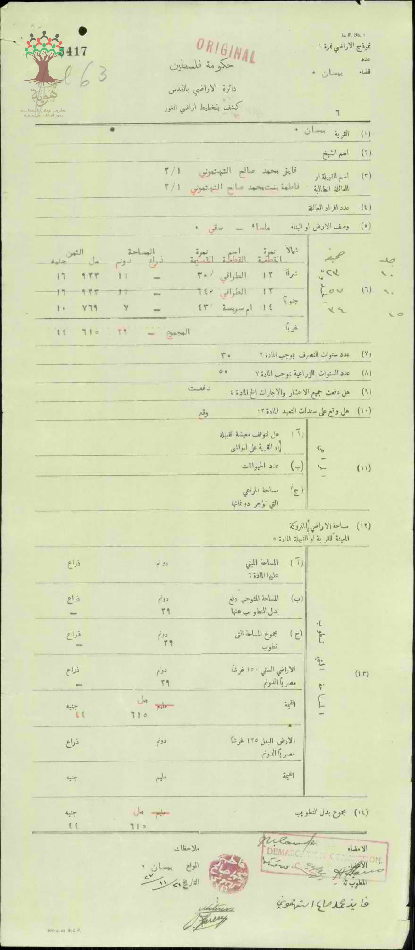 كشف تخطيط أرض أبناء محمد صالح التهتموني في بيسان