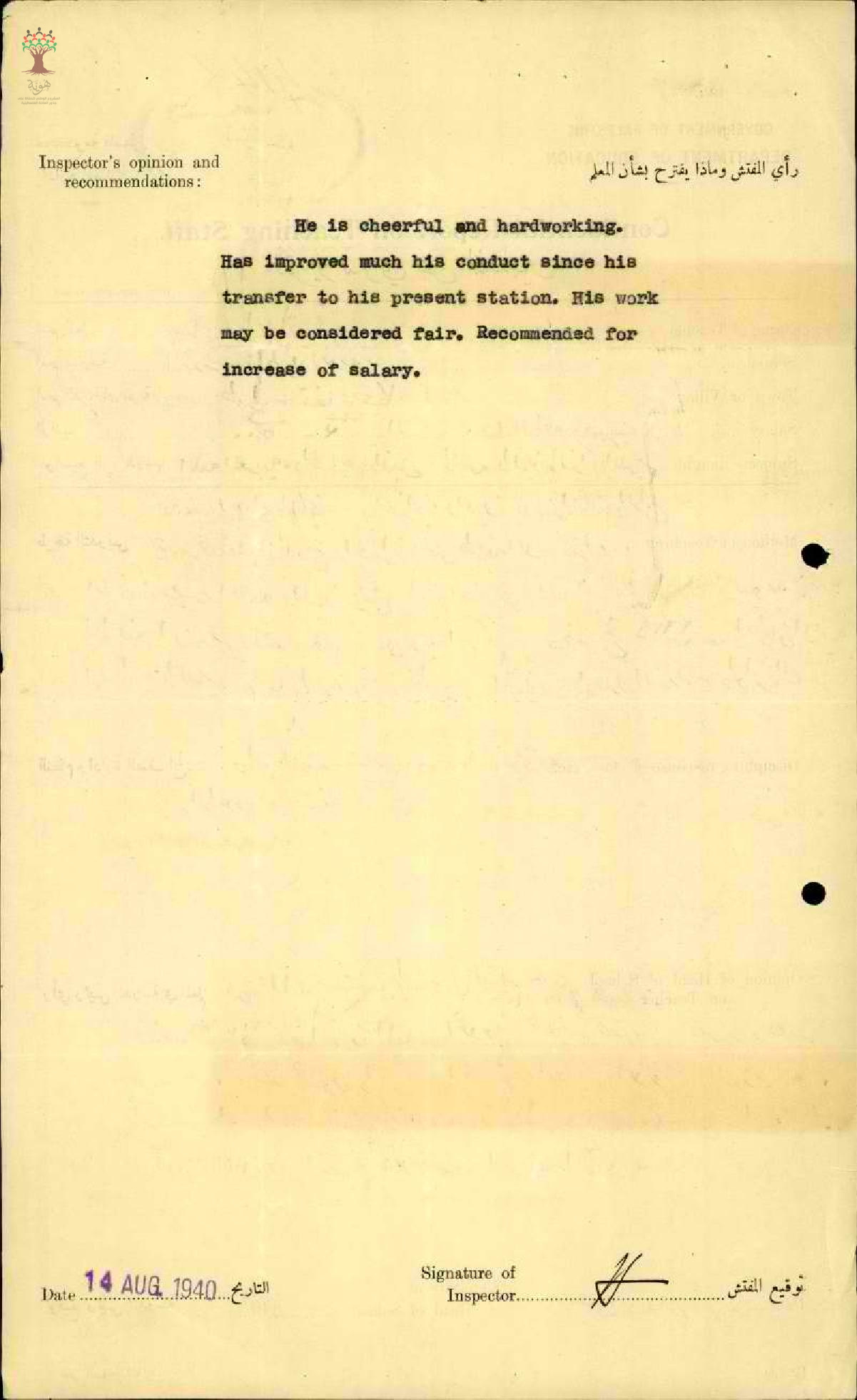 رأي المفتش العام بالمعلم صالح عبد الحليم القدومي - كفر قدوم - مدرسة طمرة
