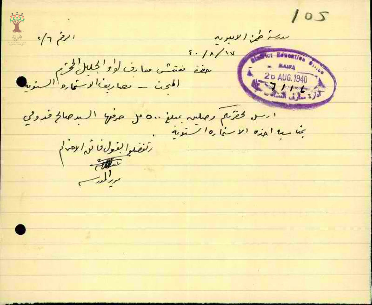 مصاريف استماري السنوية مقدمة من المعلم صالح عبد الحليم القدومي - كفر قدوم - مدرسة طمرة