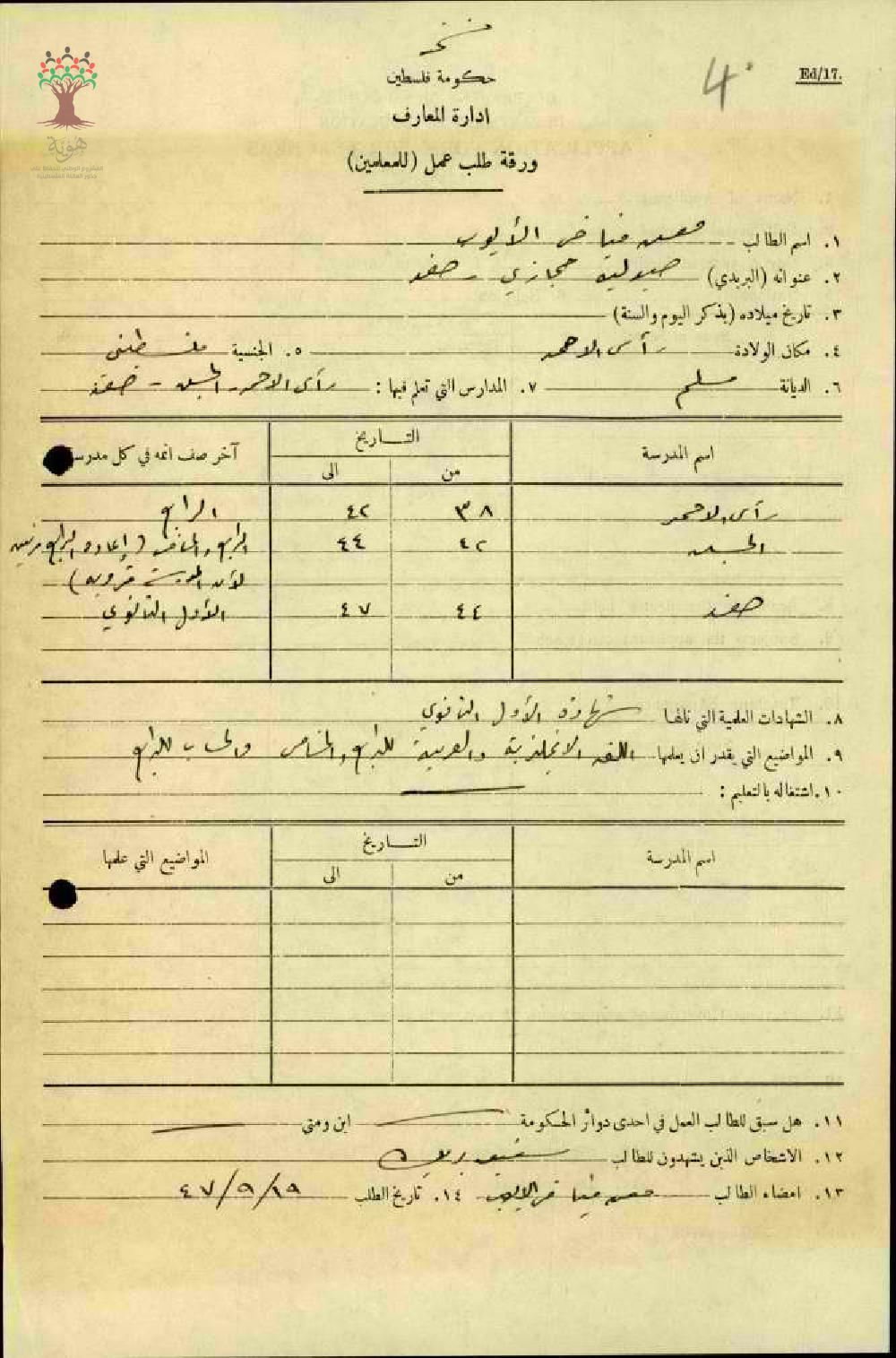 ورقة طلب عمل للمعلم معن أيوب/الراس الأحمر