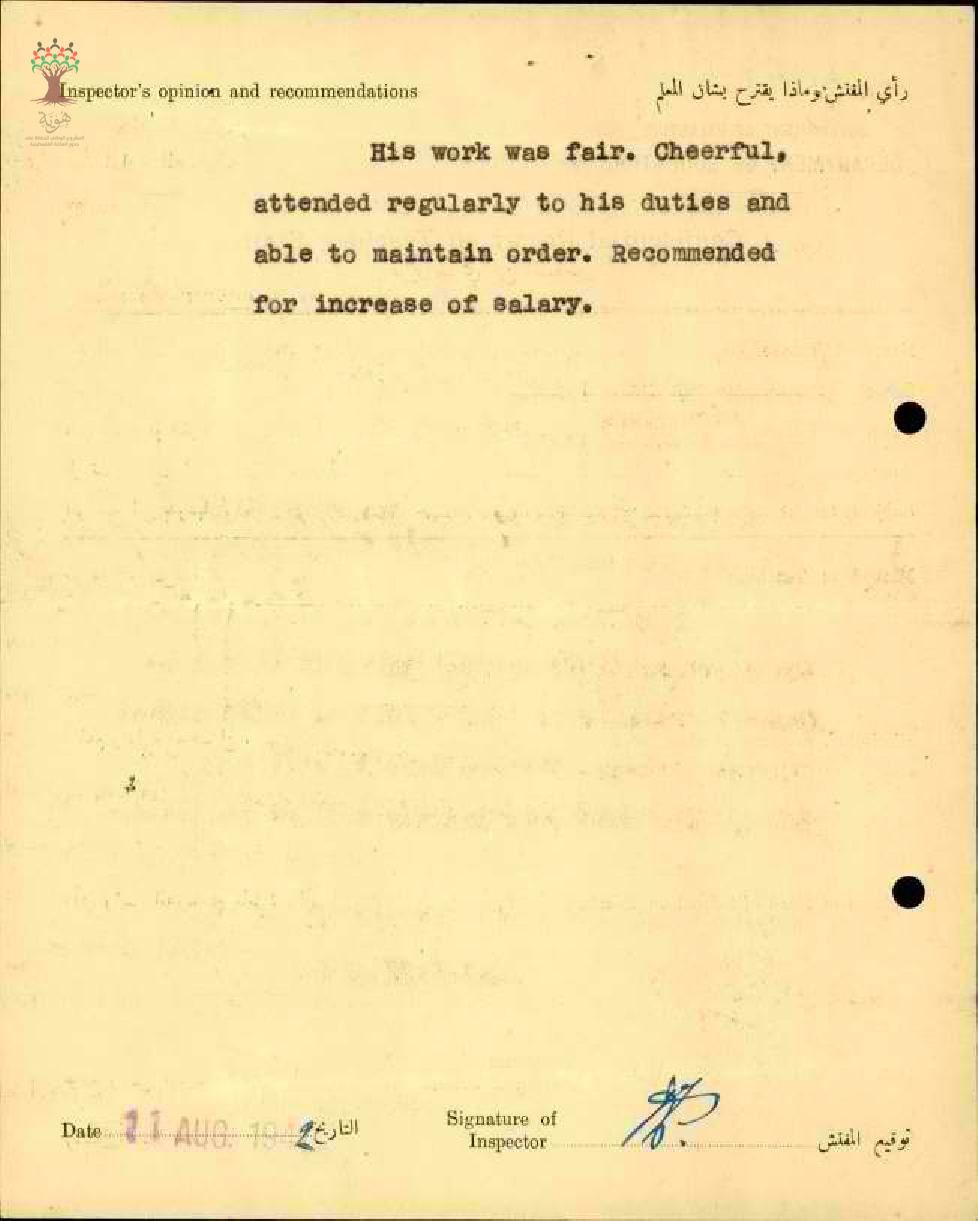 رأي المفتش العام بالمعلم صالح عبد الحليم القدومي - كفر قدوم - مدرسة طمرة