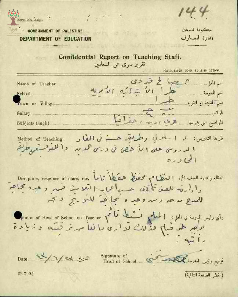 رأي مدير مدرسة طمرة بالمعلم صالح القدومي - كفر قدوم