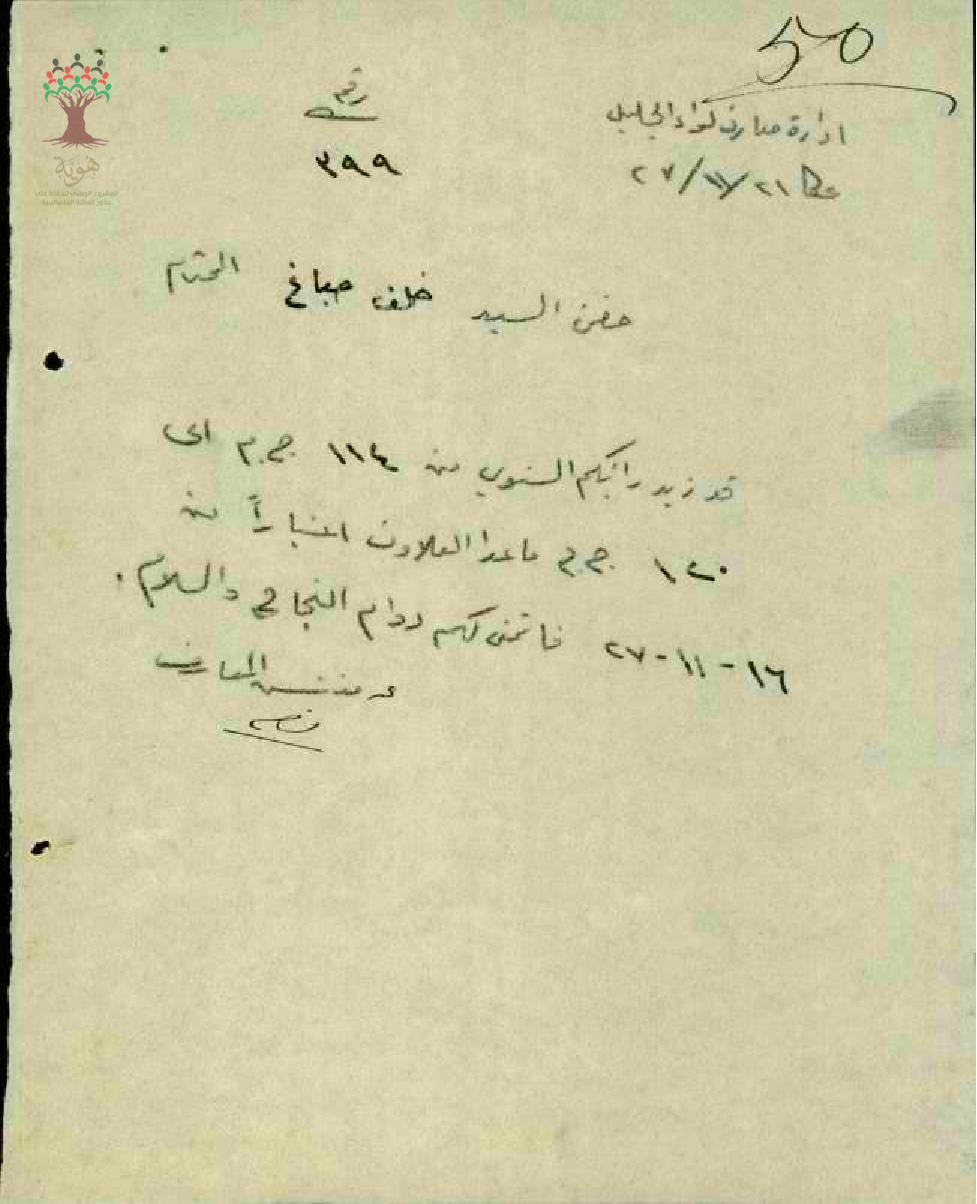 رسالة من مفتش المعارف الى المعلم خلف صباغ بخصوص زيادة راتبه السنوية