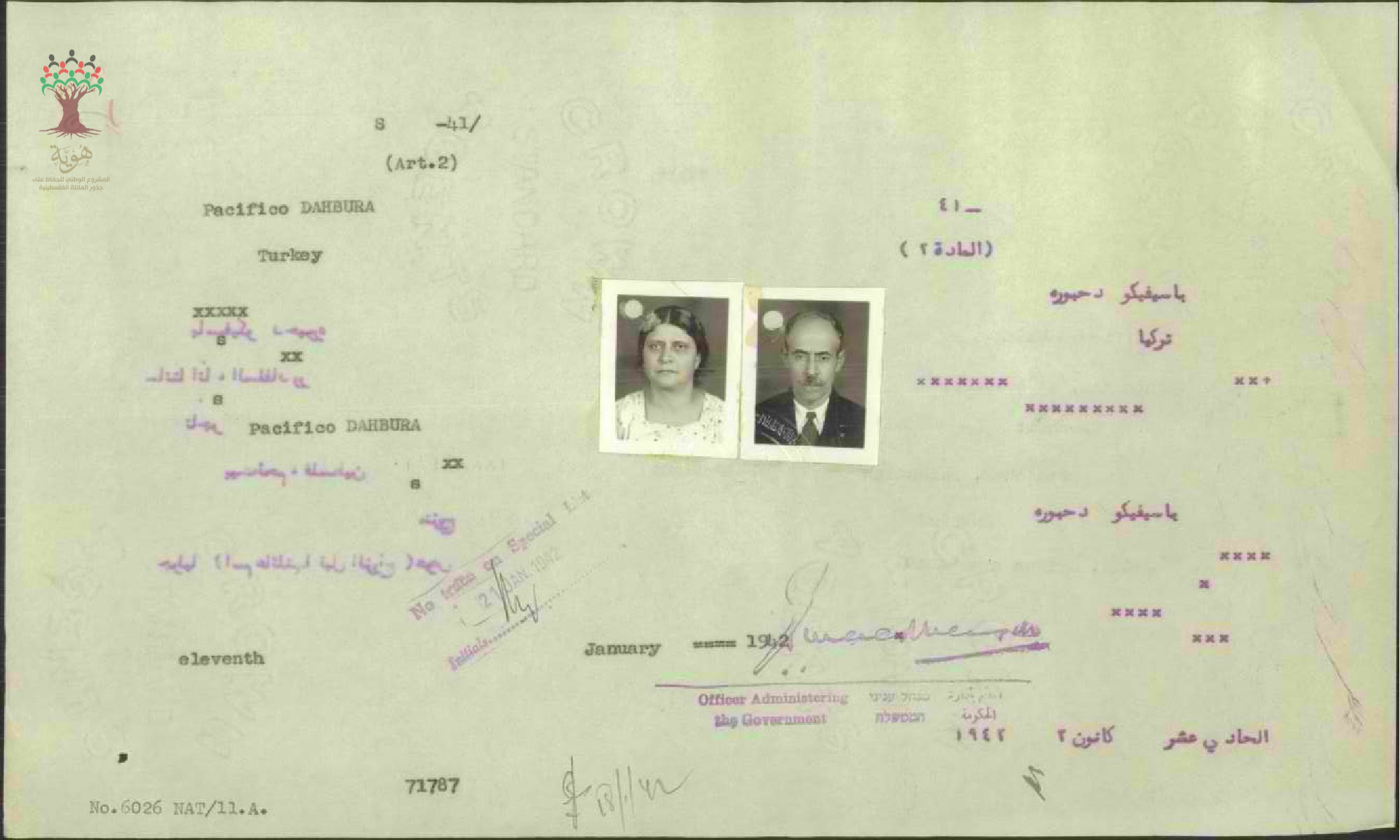 ورقة بيانات - باسيفيكو دحبورة - المرفقة بطلب الجنسية الفلسطينية