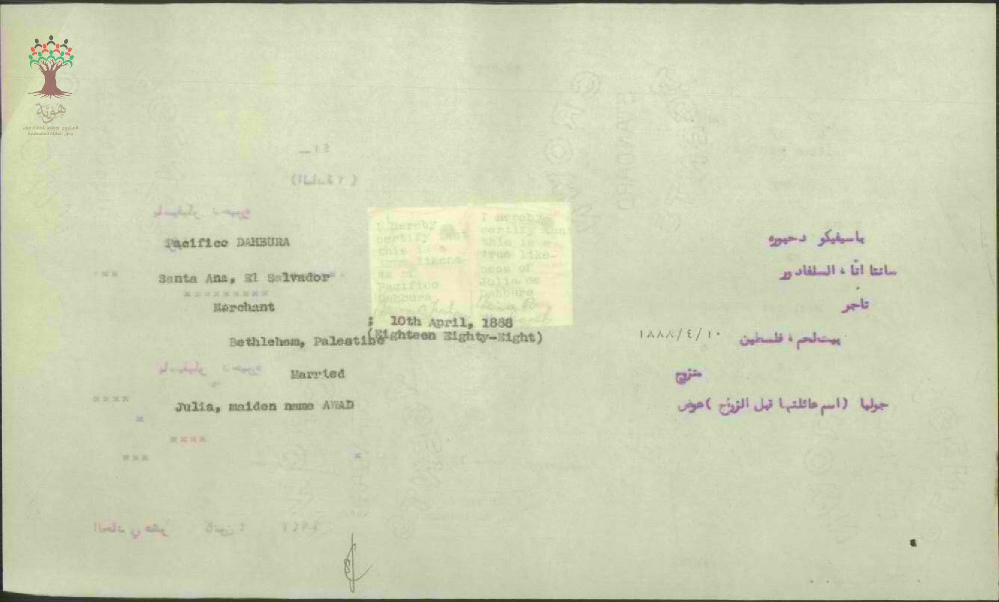 مواليد 10/4/1888 ومتزوج من جوليا عوض ويعمل تاجر