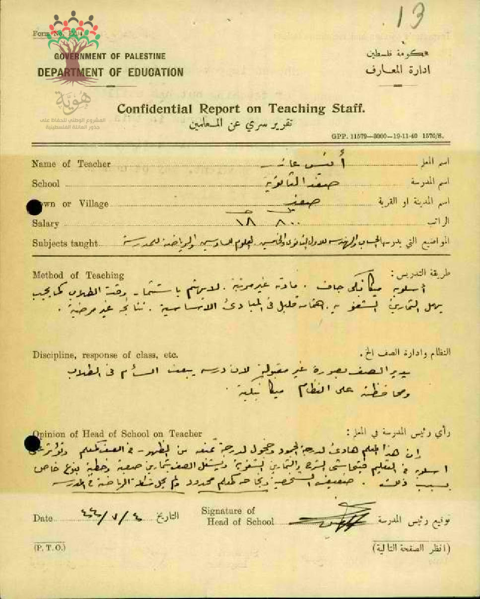 تقرير تفصيلي للمعلم انيس باسيلا عازار حداد من قبل مدير مدرسة صفد 2