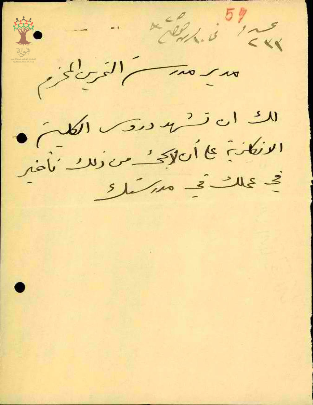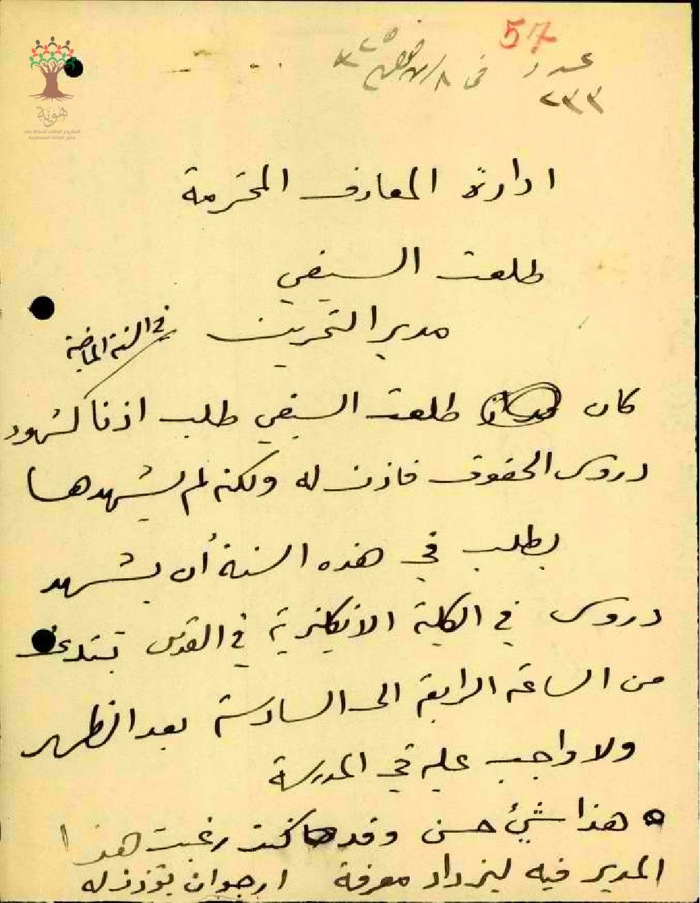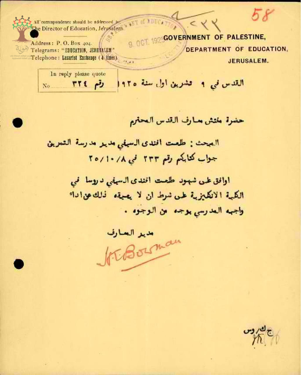 مجموعة رسائل بخصوص رغبة المعلم طلعت السيفي بالالتحاق بالمدرسة الانكليزية والسماح له بذلك