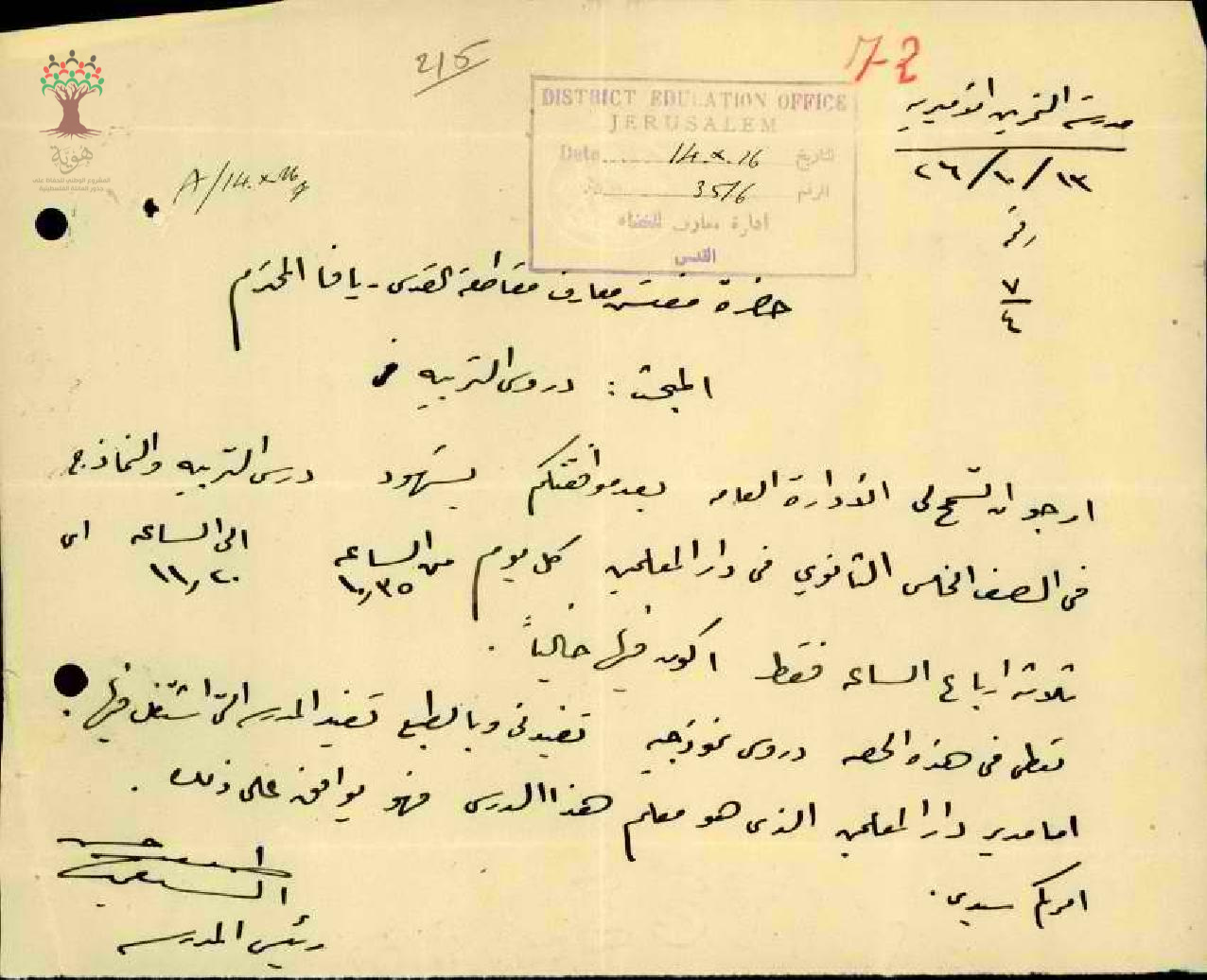 رسائل بخصوص حضور المعلم طلعت السيفي لدروس التربية