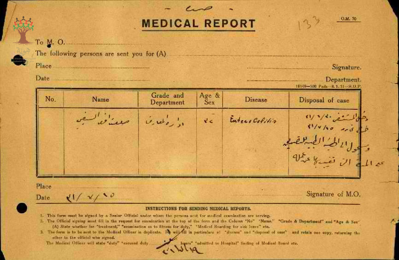 تقارير طبية ووصولات دخول المعلم طلعت السيفي الى المستشفى