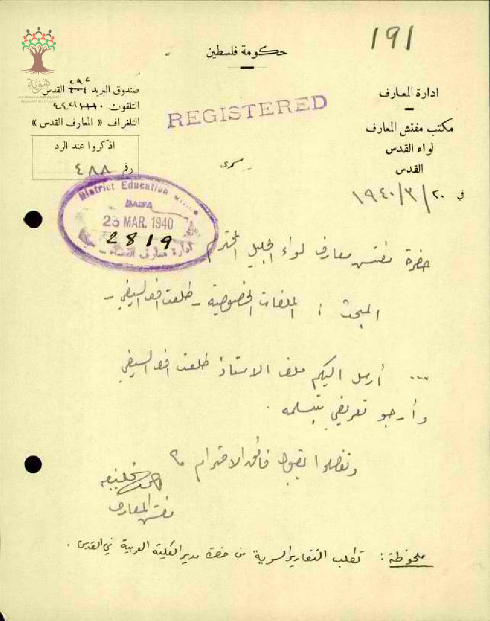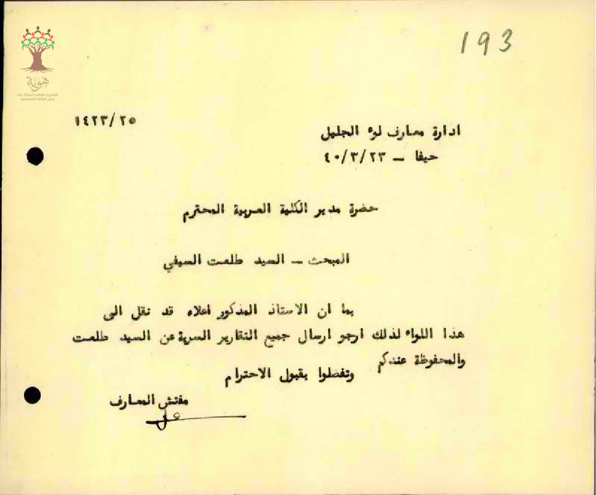 رسائل بخصوص الملف الشخصي والتقارير التفصيلية المتعلقة بالمعلم طلعت السيفي