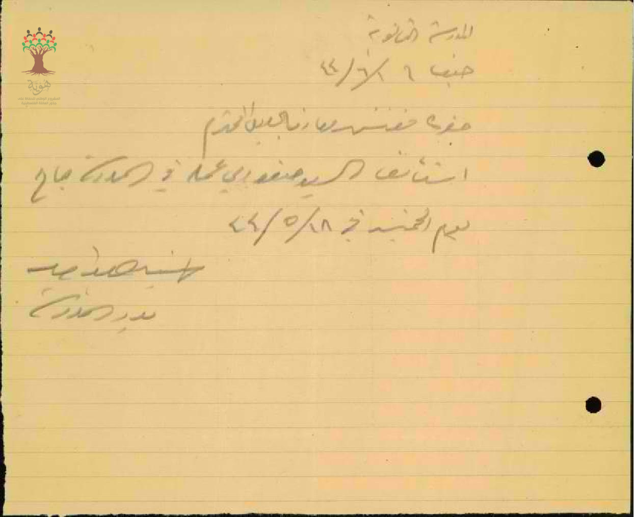 رسالة من مدير مدرسة حيفا الى مفتش المعارف بخصوص عودة المعلم محمد صفوري الى العمل