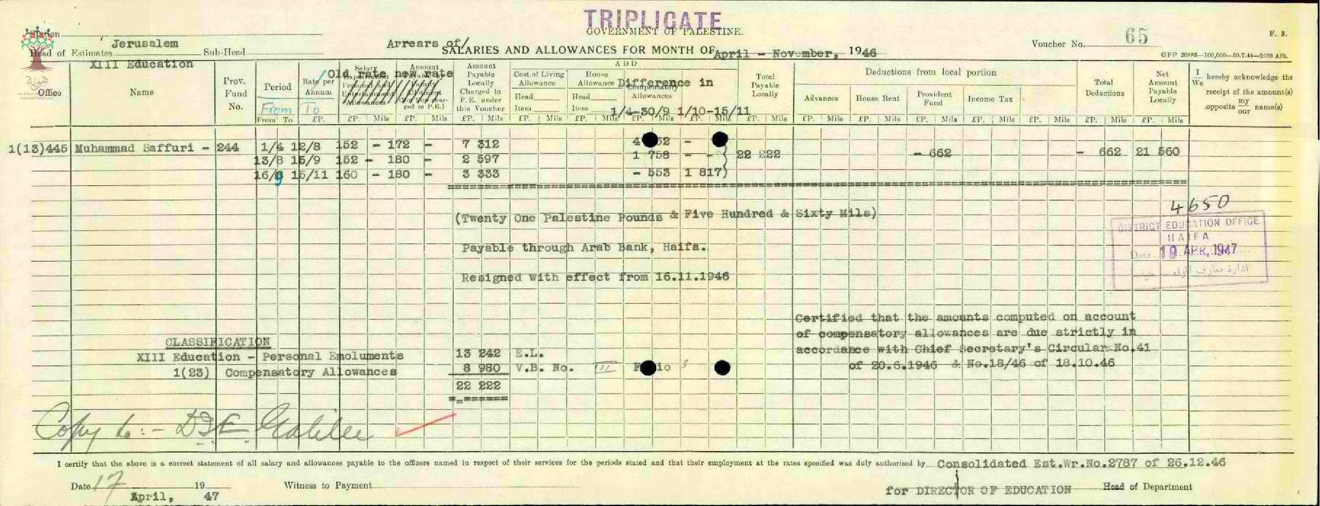 تقرير مفصل لراتب المعلم محمد حسن صفوري