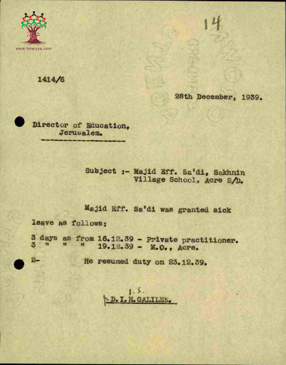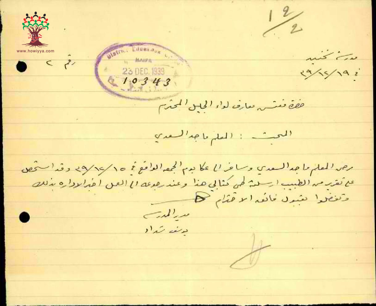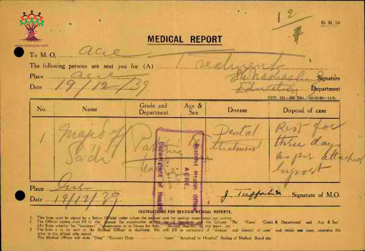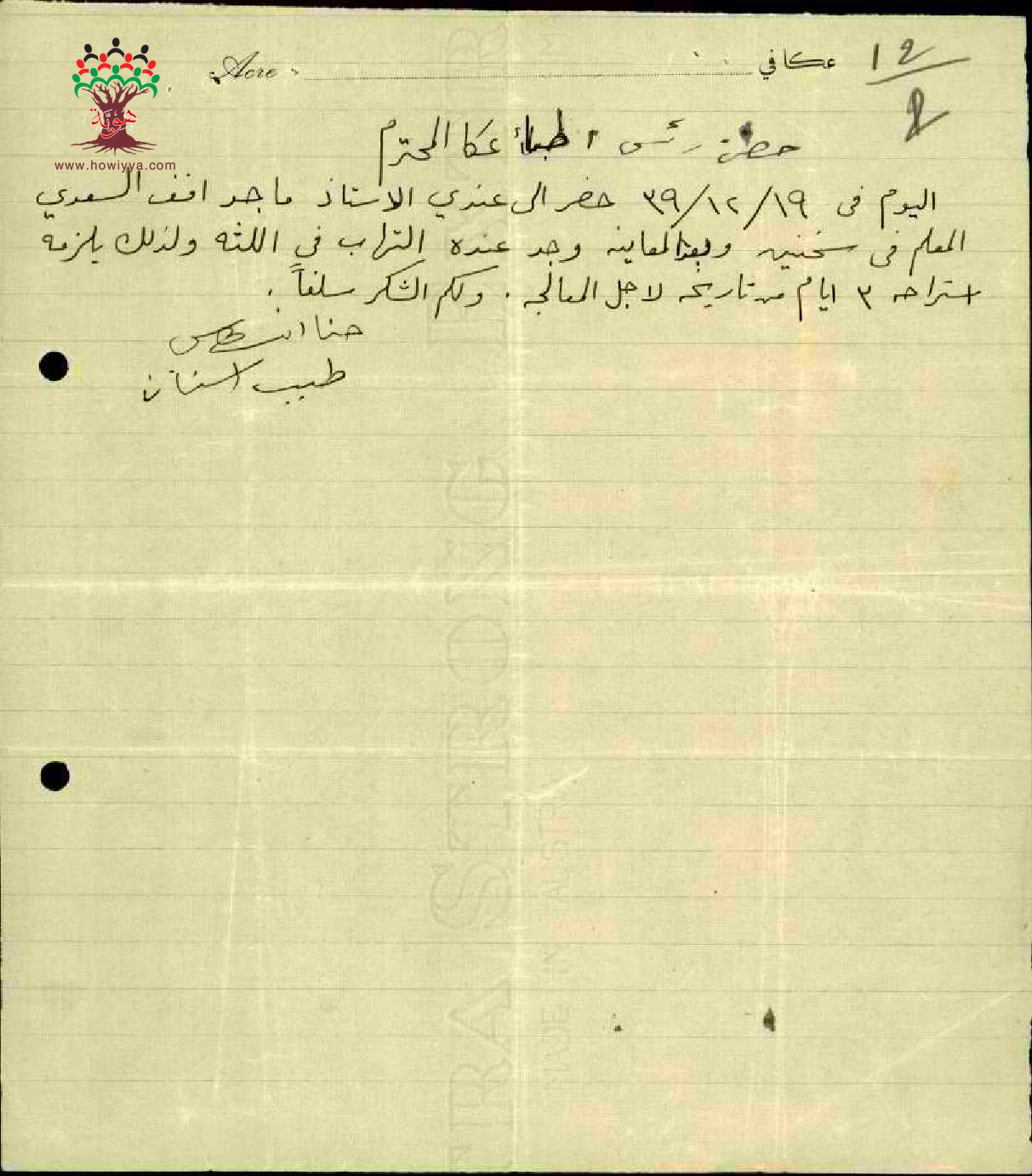 تقرير طبي مقدم من قبل المعلم ماجد السعدي - عكا - مدرسة سخنين
