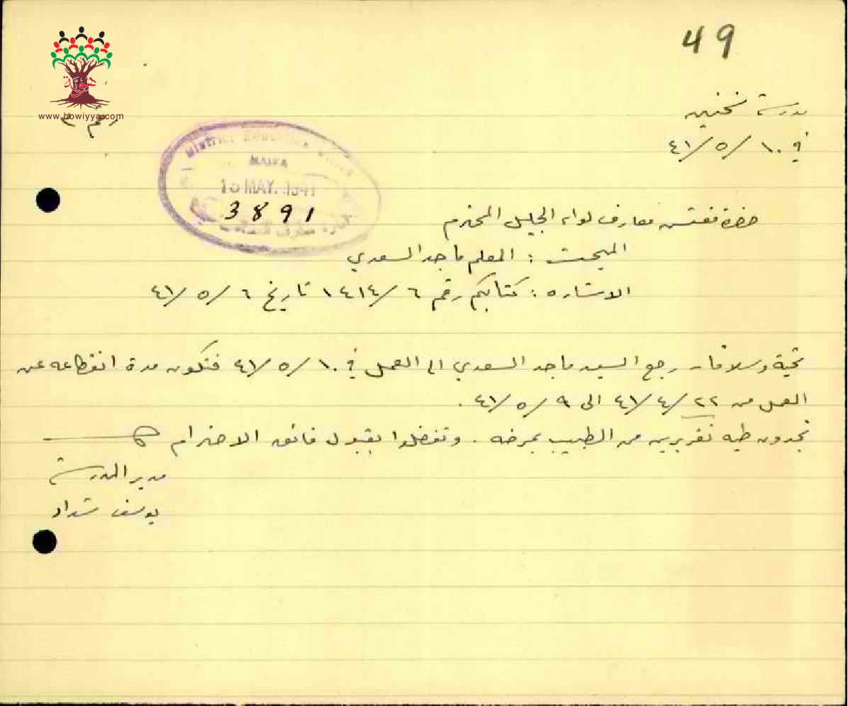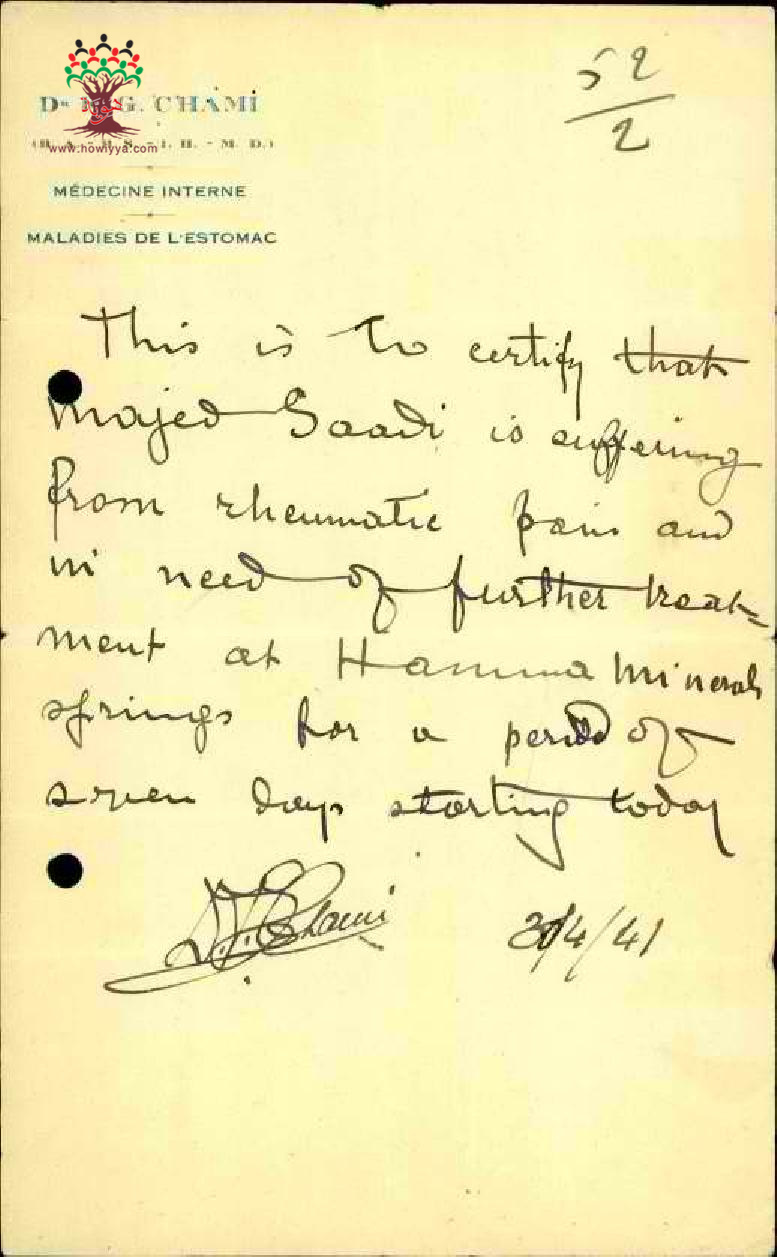 تقرير طبي مقدم من قبل المعلم ماجد السعدي و اتضح انه مصاب بمرض الروماتزم - عكا - مدرسة سخنين