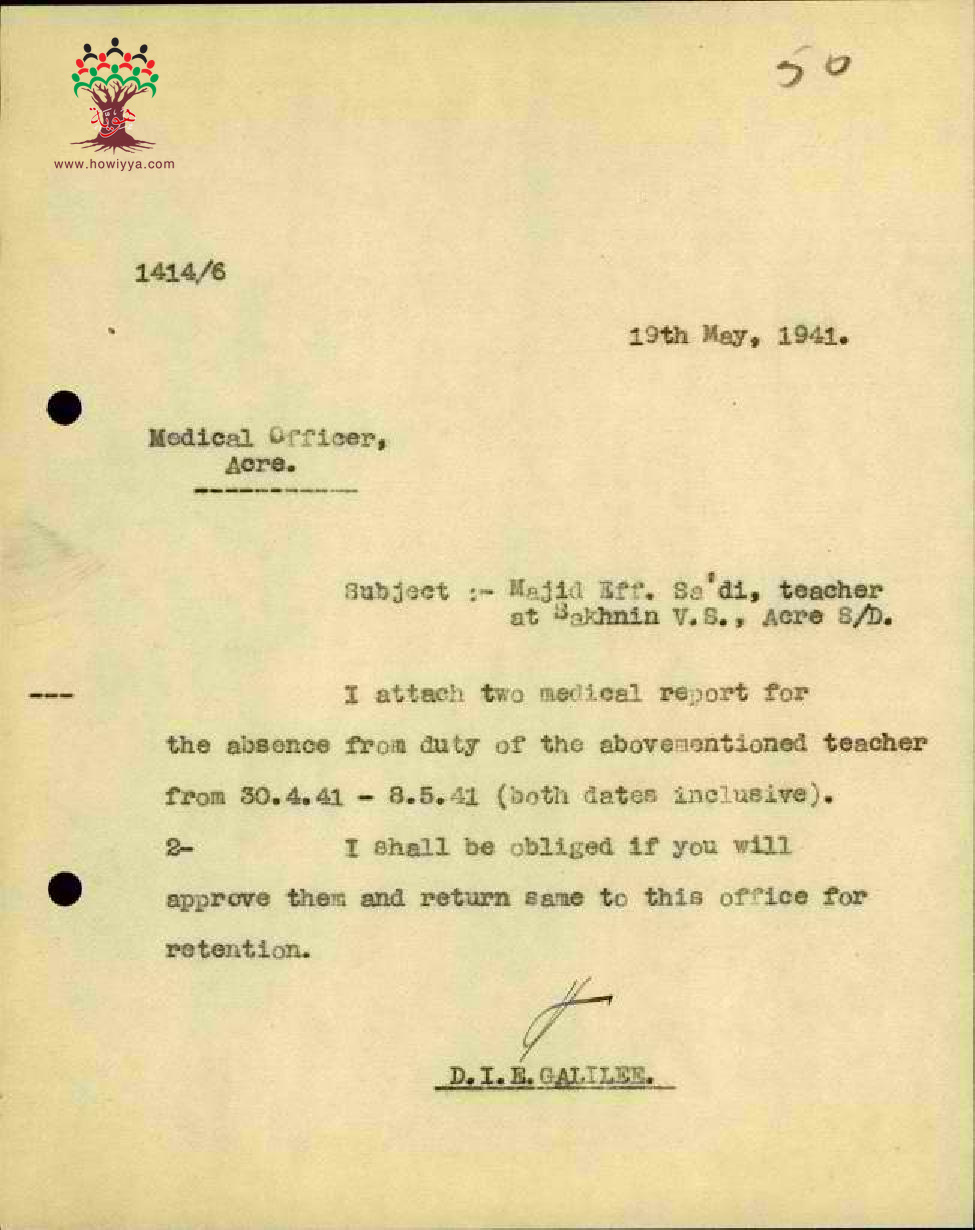 تقرير طبي مقدم من قبل المعلم ماجد السعدي - عكا - مدرسة سخنين