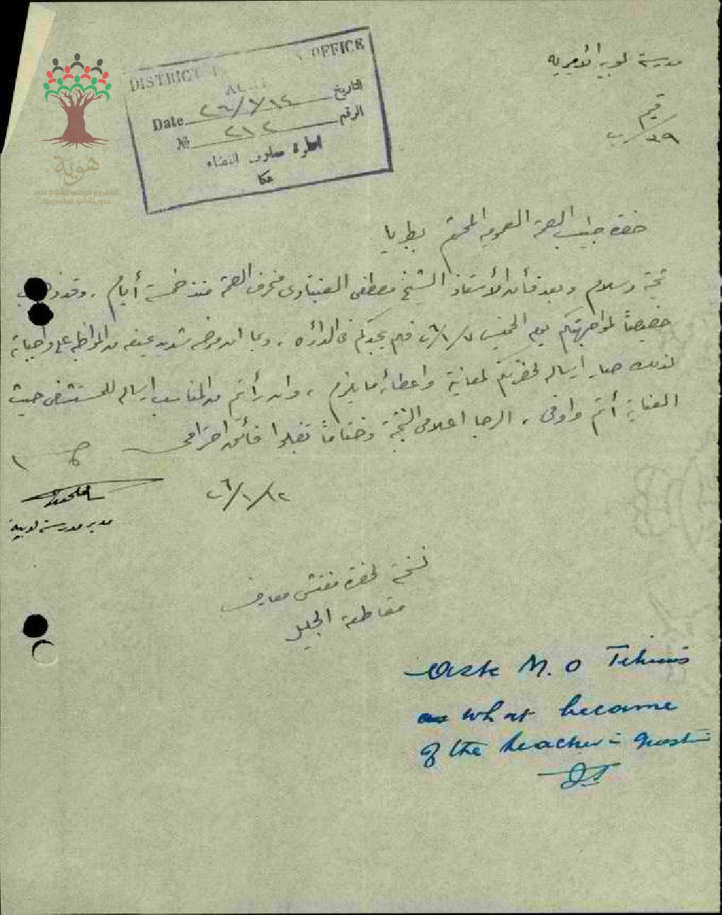 رسالة من مدير مدرسة لوبيا الى طبيب الصحة العمومي بخصوص مرض المعلم مصطفى عنبتاوي