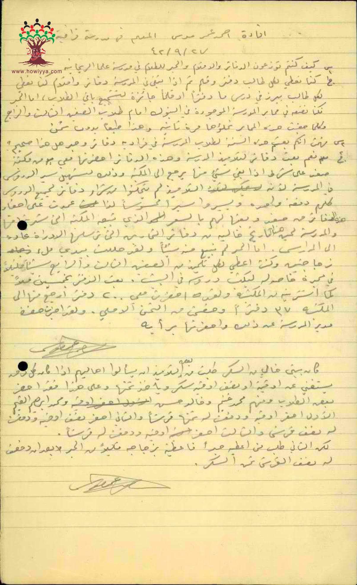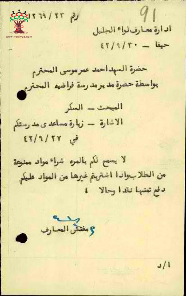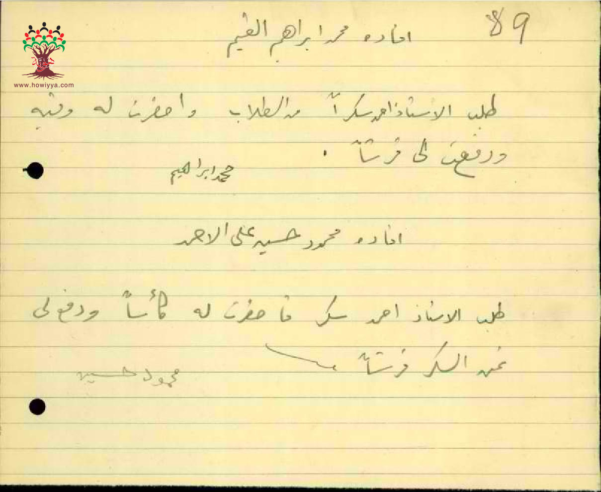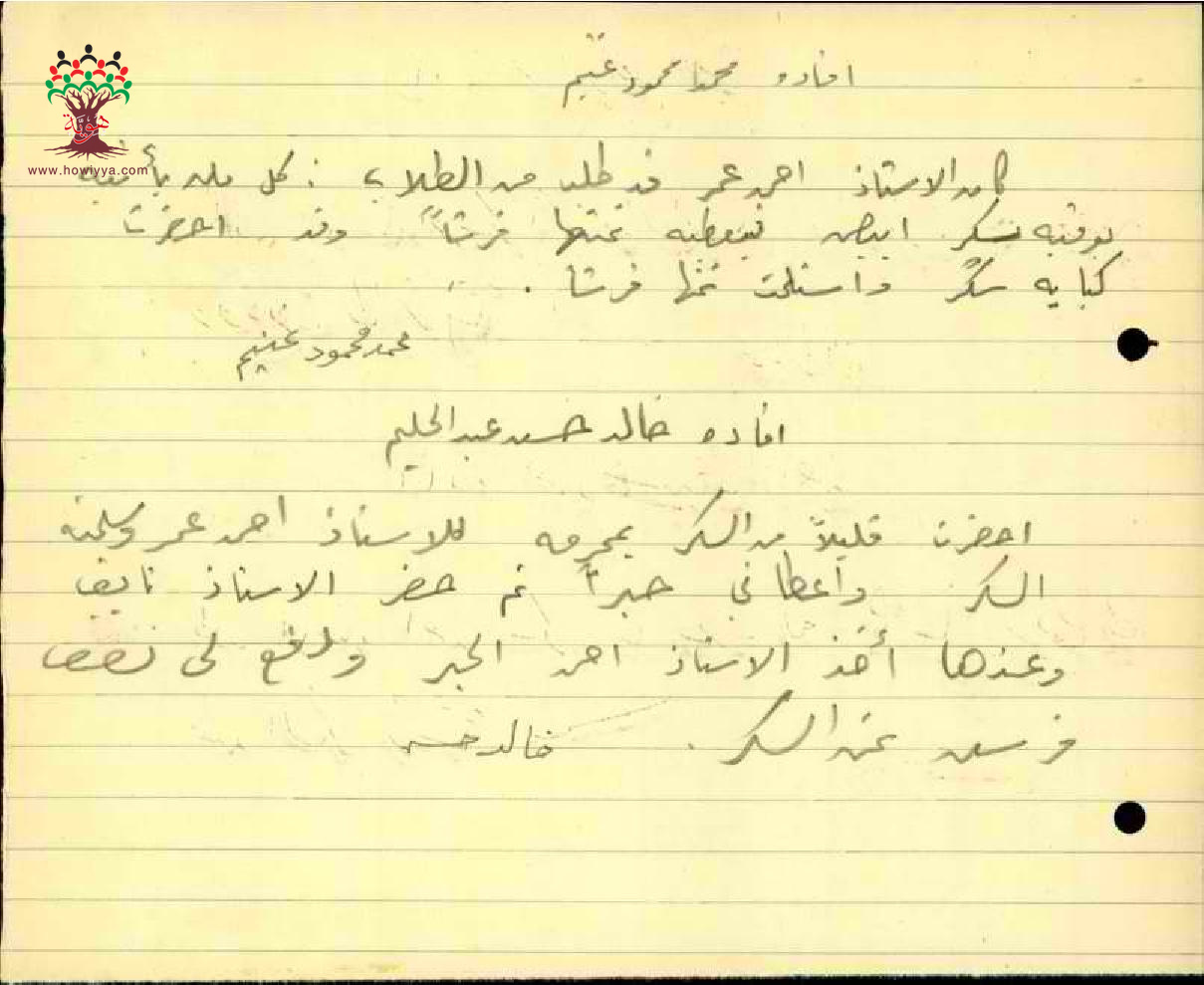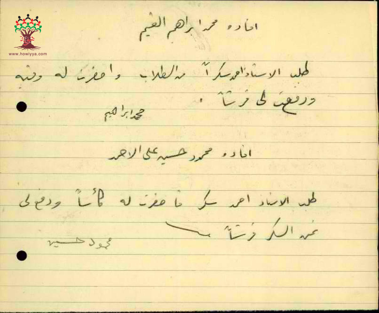 طلب المعلم احمد موسى سكر من التلاميذ - مدرسة فرادة - صفد