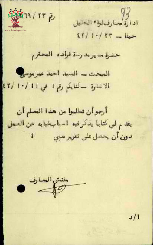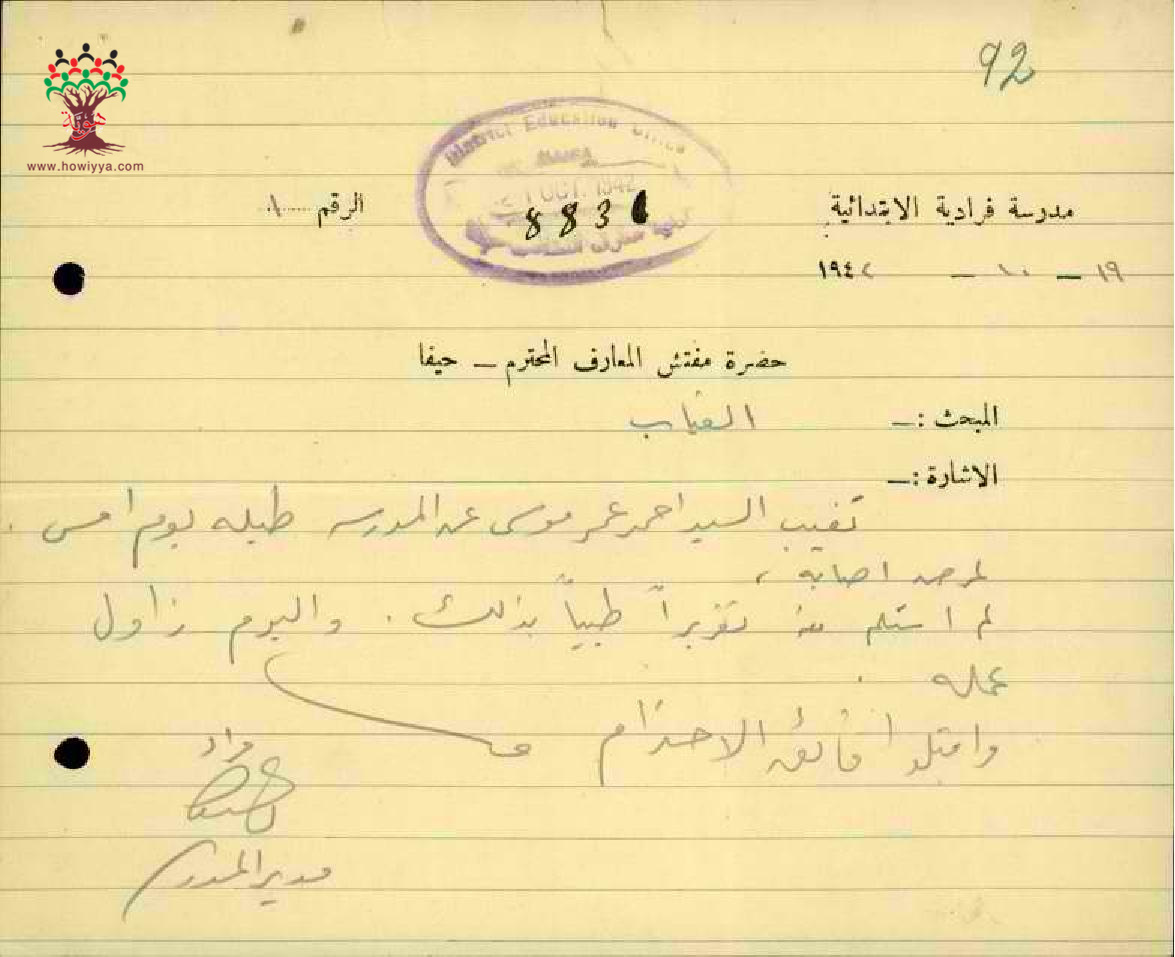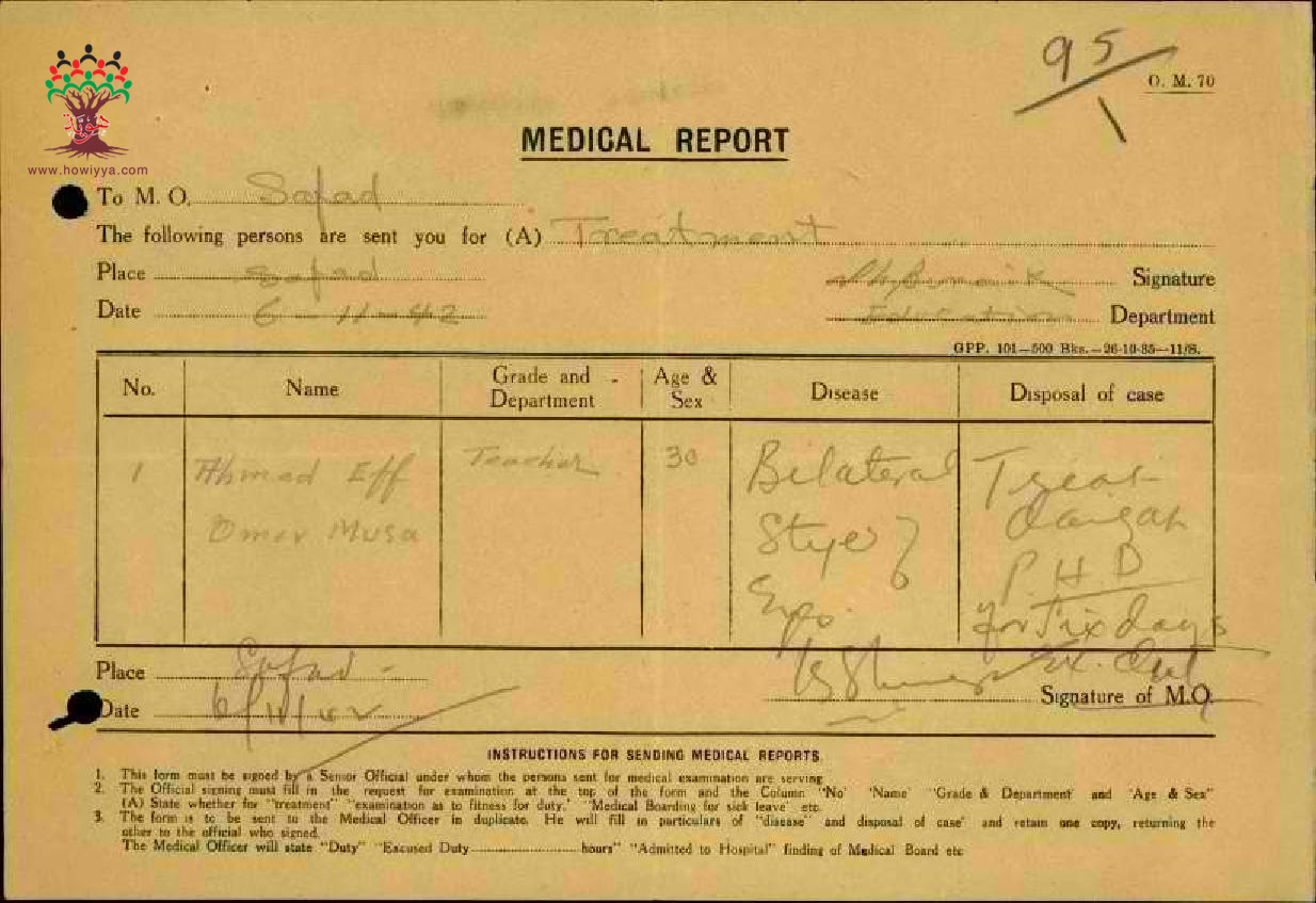 تقرير طبي مقدم من قبل المعلم احمد موسى - صفد - مدرسة فرادة