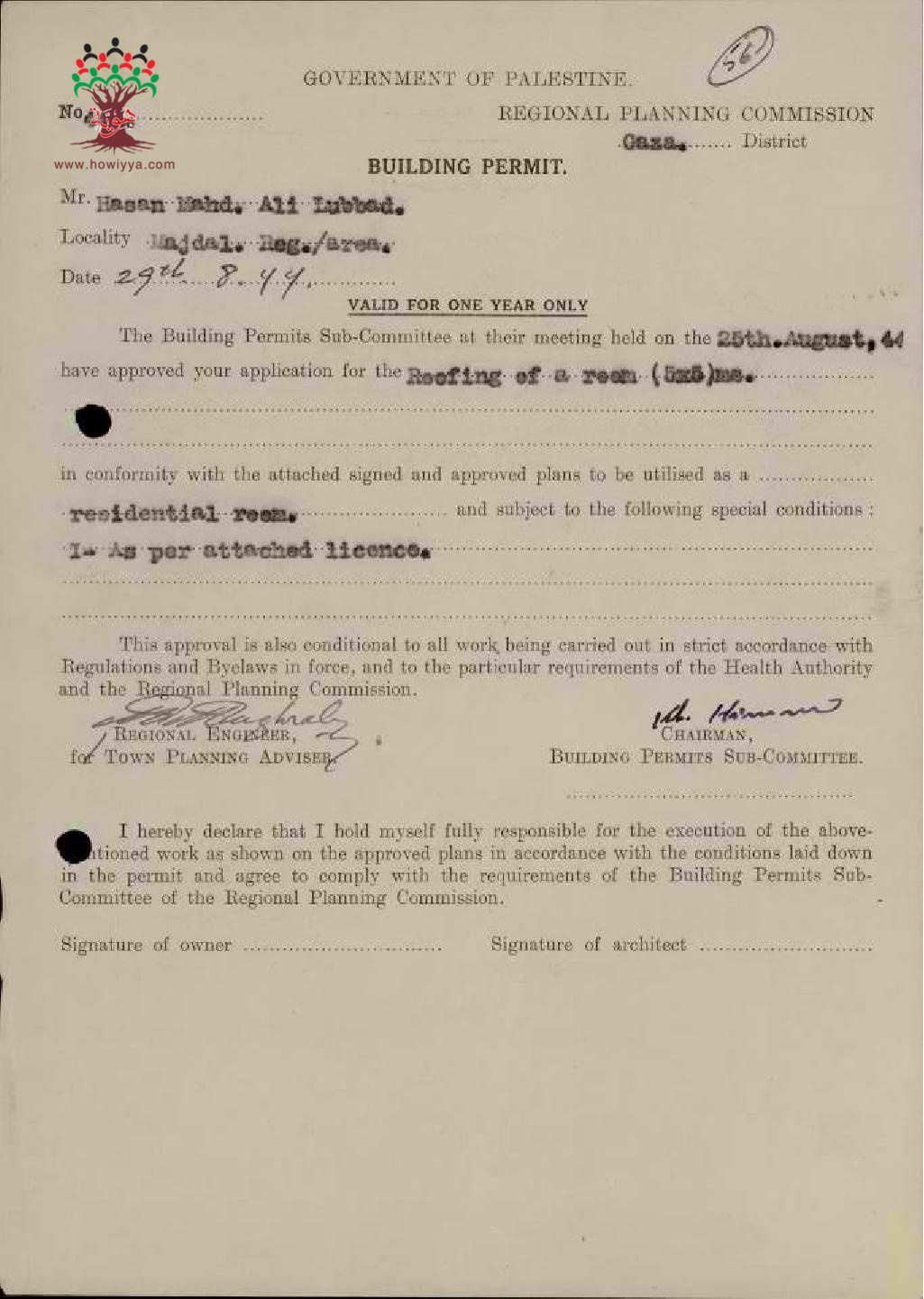رخصة بناء غرفة - حسن محمد علي لبد - المجدل
