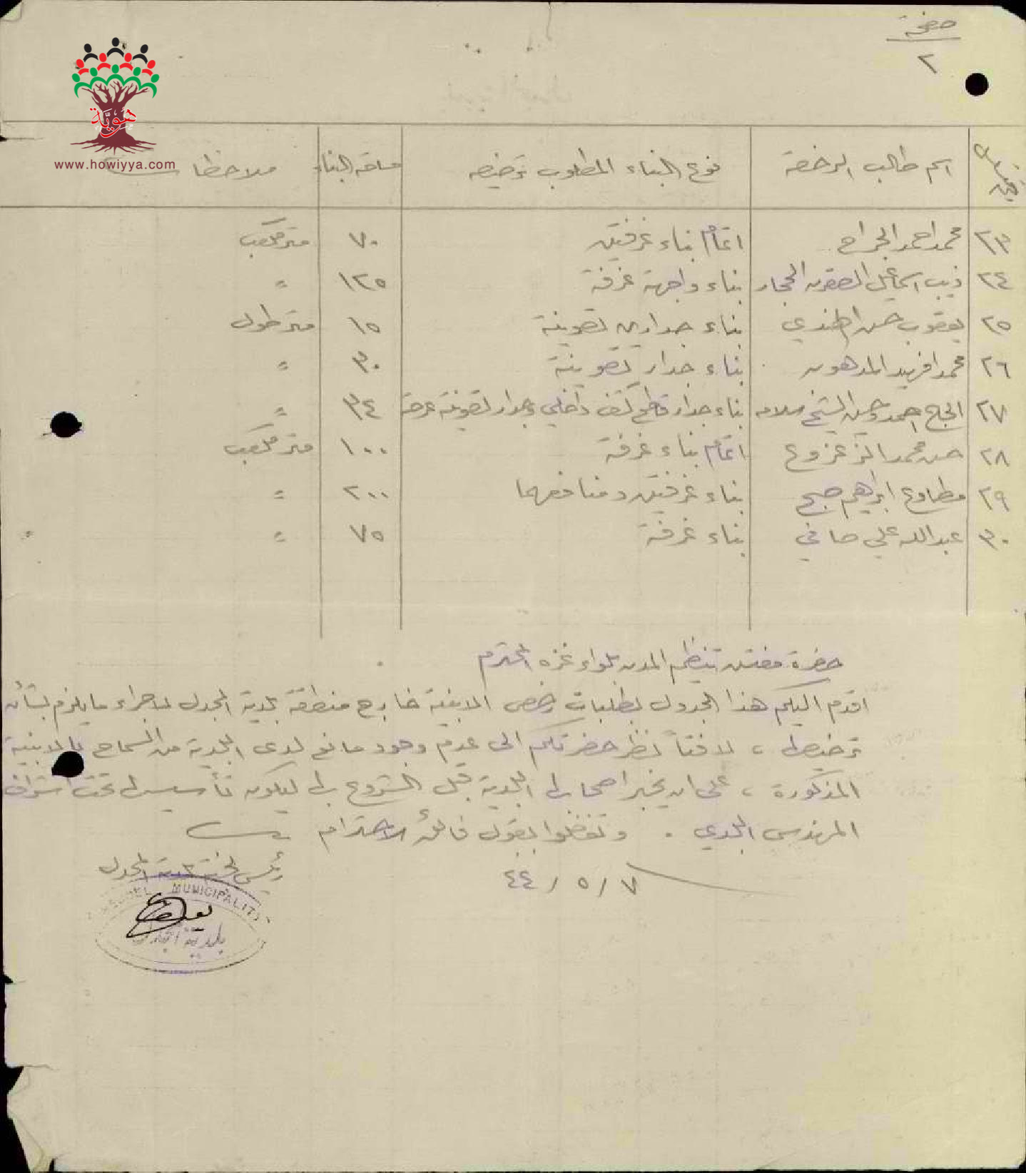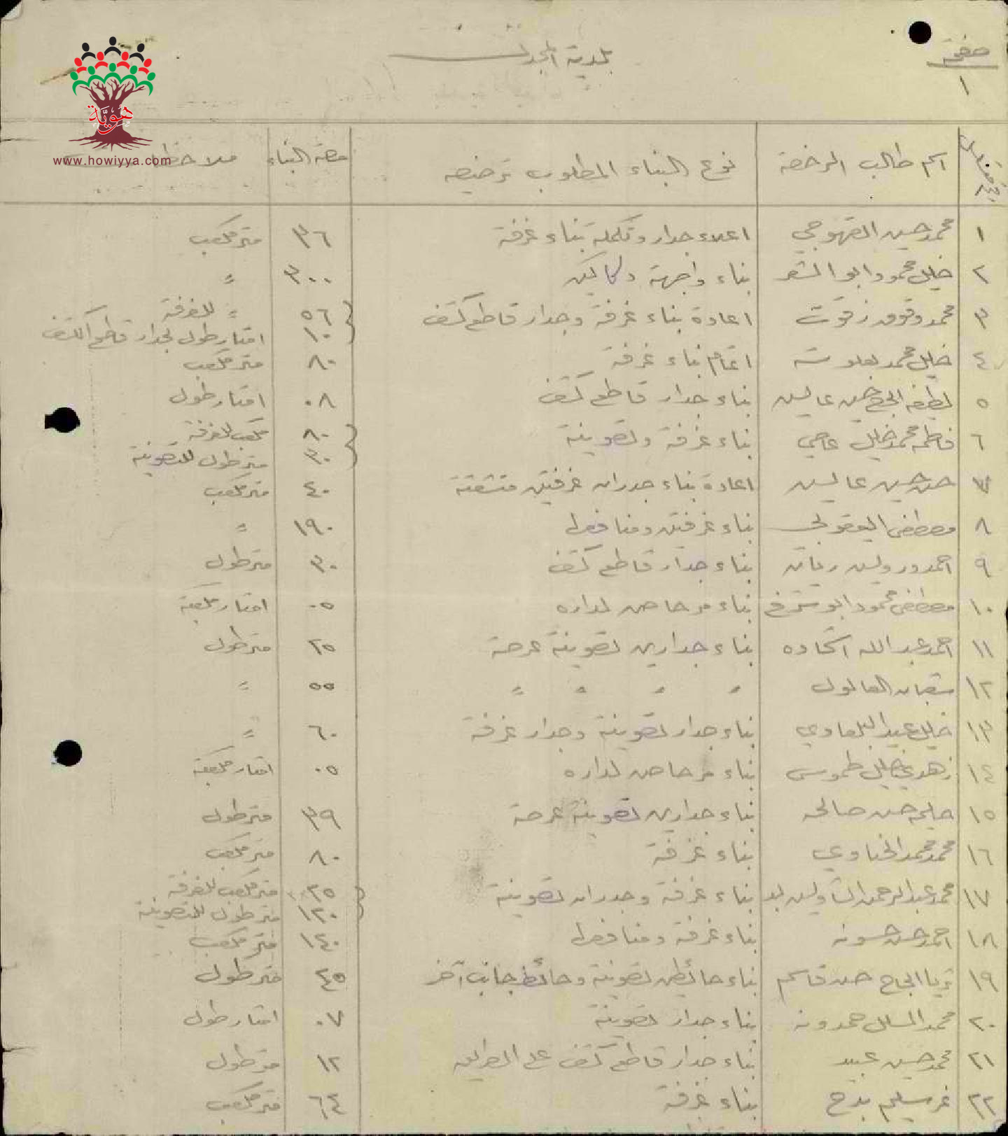 لائحة بأسماء الأشخاص الذين طلبوا رخص بناء