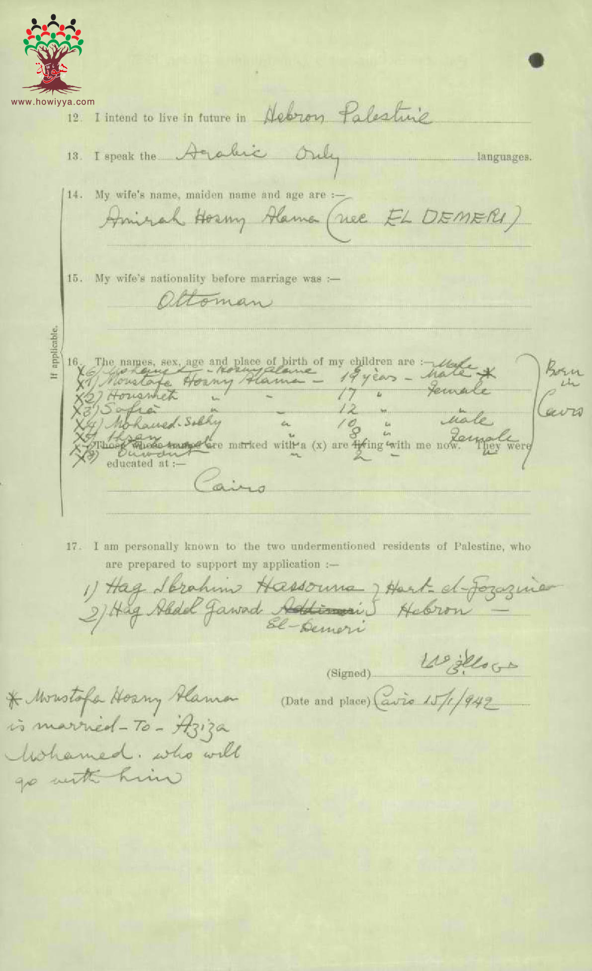طلب الجنسية الفلسطينية - حسني مصطفى علمة - الخليل