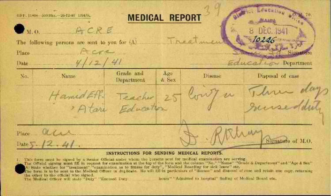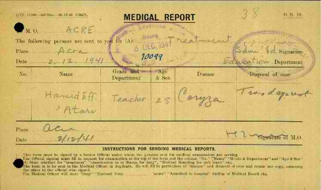 تقارير طبية عن غياب المعلم حامد عطاري مدرسة عكا-عرابة