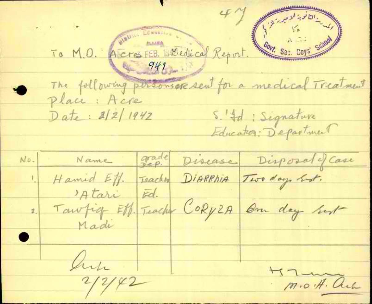 تقرير طبي عن غياب المعلم حامد عطاري-مدرسة عكا