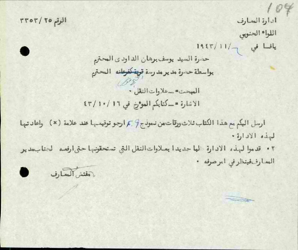 مجموعة رسائل بخصوص علاوات النقل للمعلم يوسف الداودي