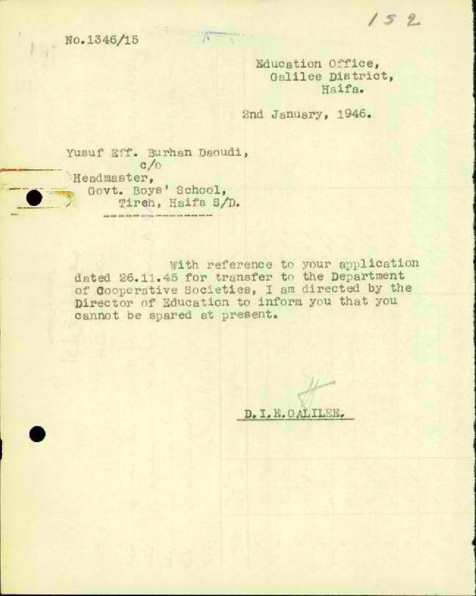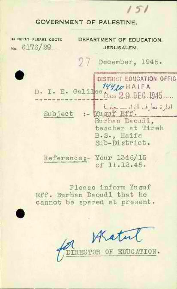 رسائل بخصوص عدم امكانية نقل المعلم يوسف الداودي