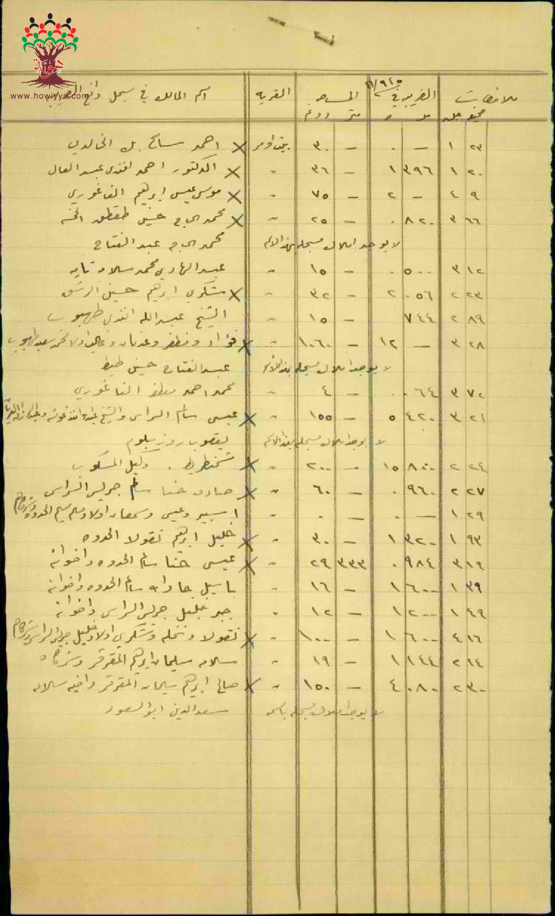 لائحة بأسماء الملاك في سجل دفع الضريبة لسنة 1945/46