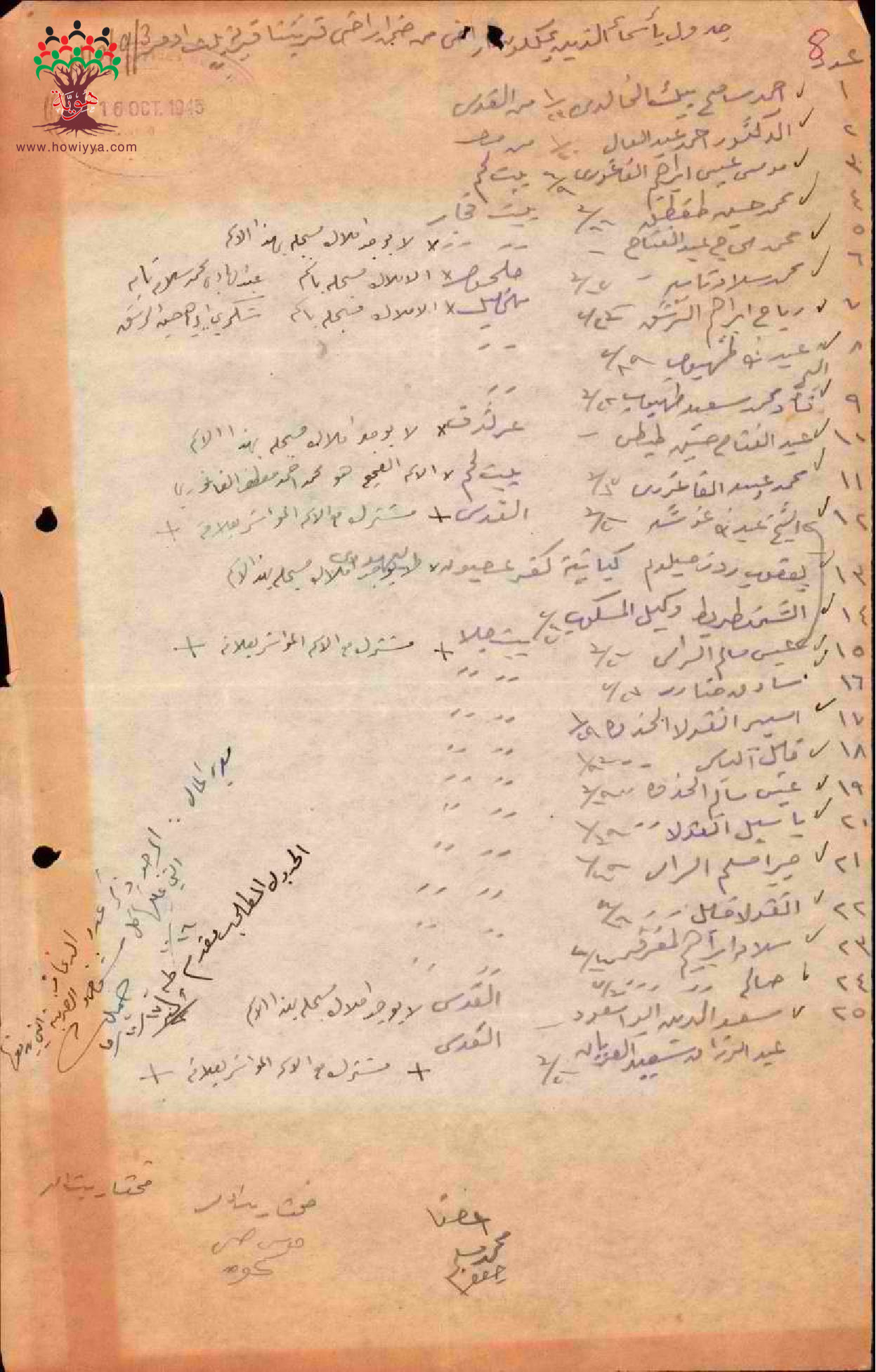 جدول بأسماء الذين يملكون أراضي ضمن أراضي قرية بيت امر