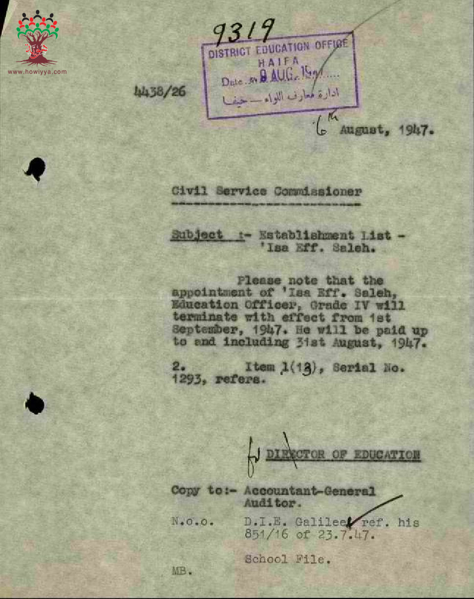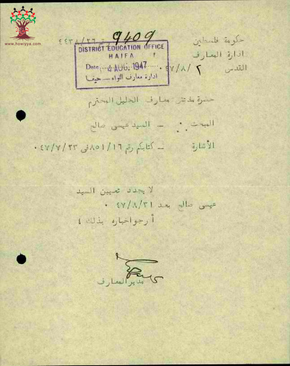 مجموعة رسائل بخصوص انهاء خدمة المعلم عيسى صالح عاقلة