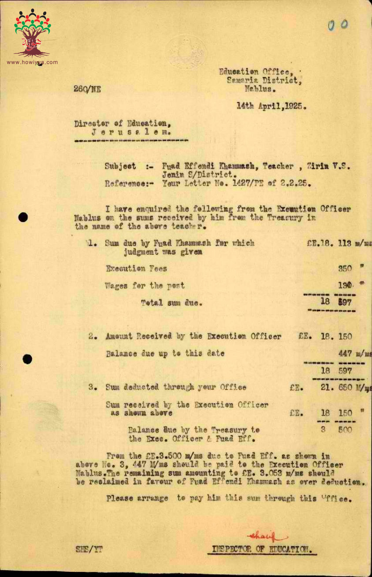 مجموعة رسائل بخصوص دفعات تسديد دين المعلم فؤاد خماش