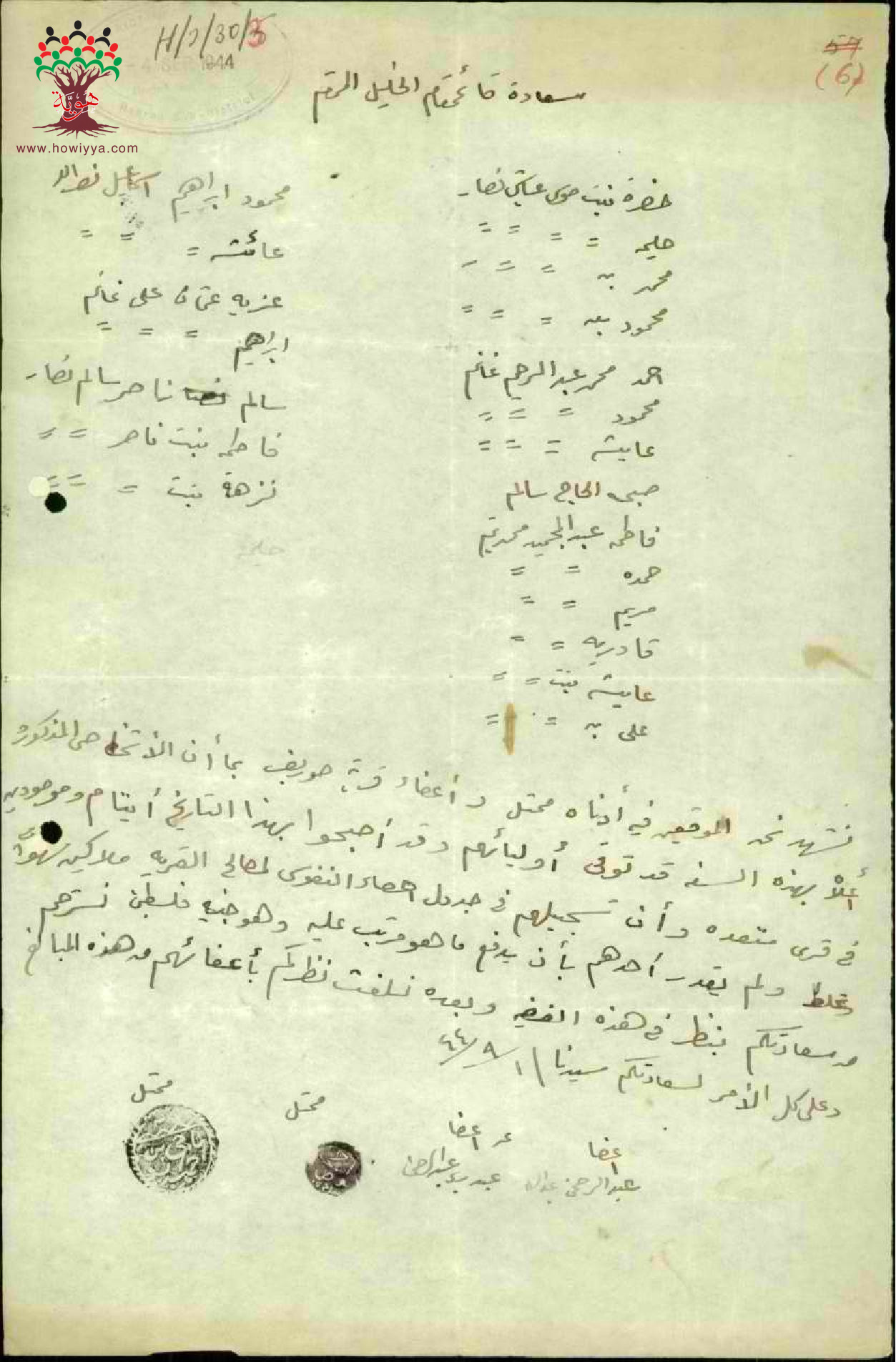 رسالة موقعة من أعضاء قرية صوريف تطلب اعفاء الأشخاص المذكورة أسمائهم من الضريبة مع ذكر السبب
