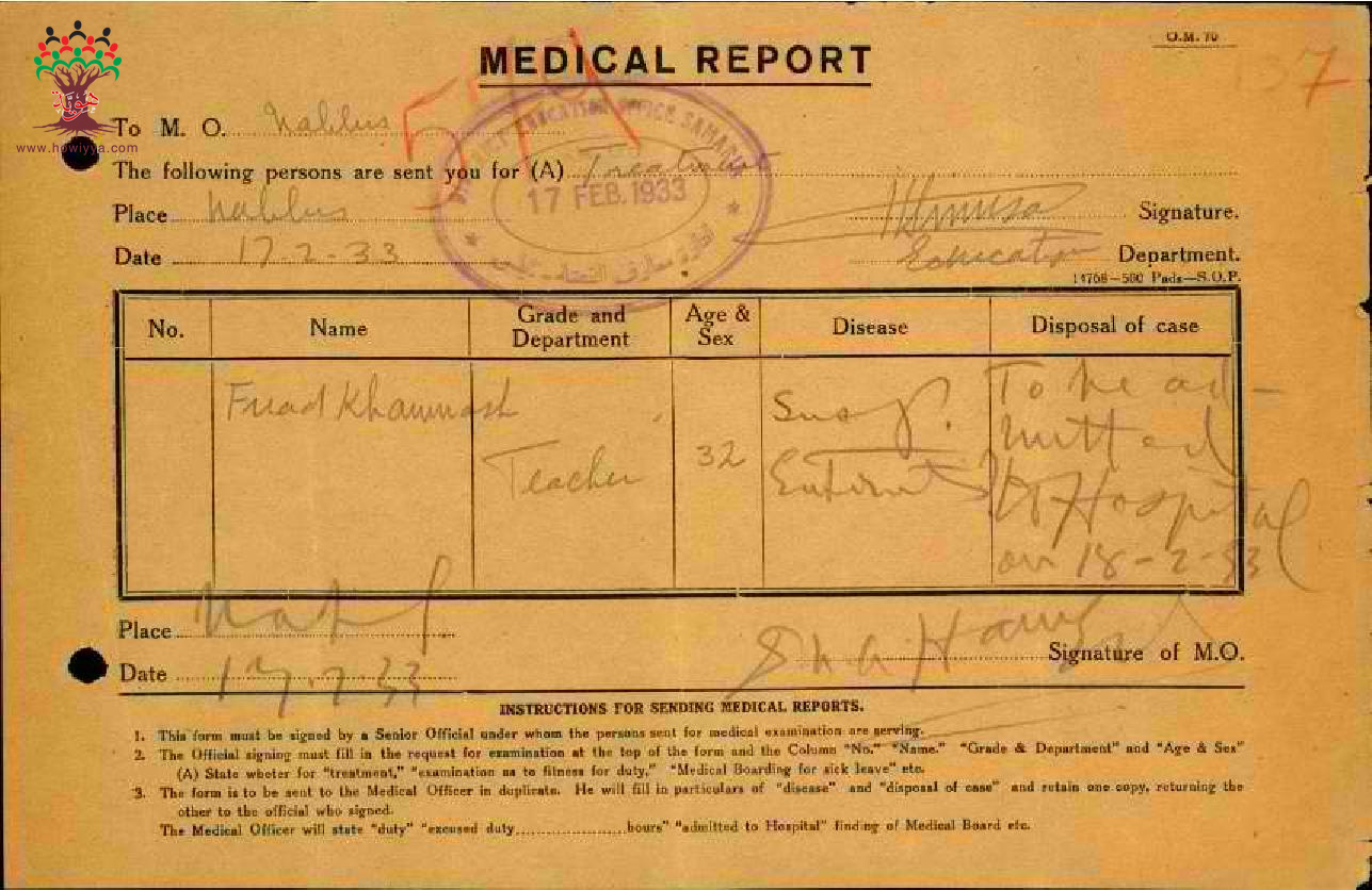 مجموعة تقارير طبية عن غياب المعلم فؤاد خماش-مدرسة كفر اللبد