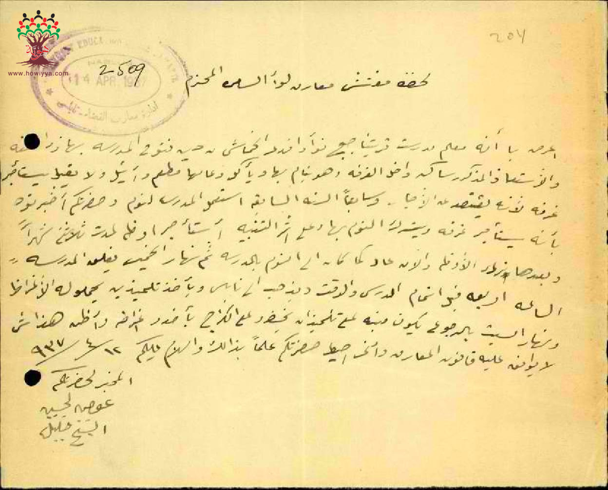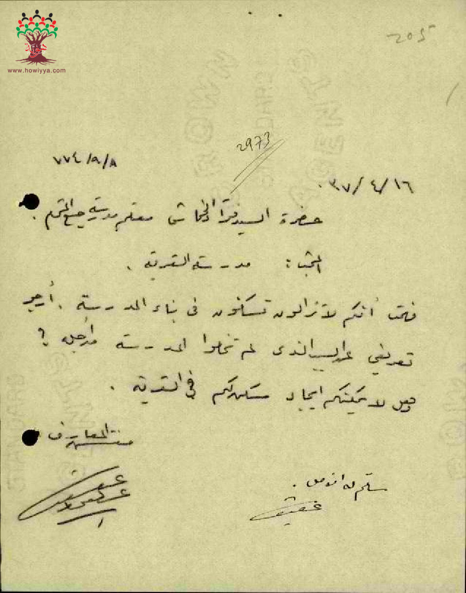 رسائل بخصوص سكن المعلم فؤاد خماش في بناء المدرسة