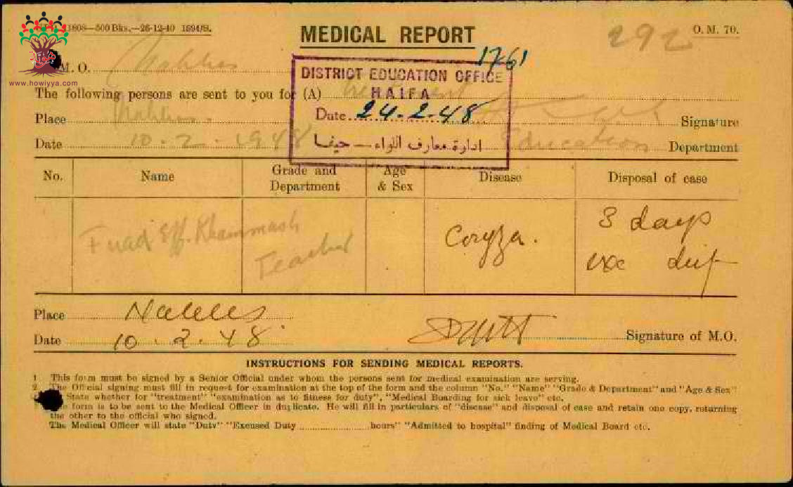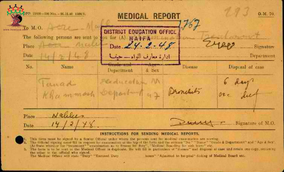 تقارير طبية عن تغيب المعلم فؤاد خماش-مدرسة الكابري