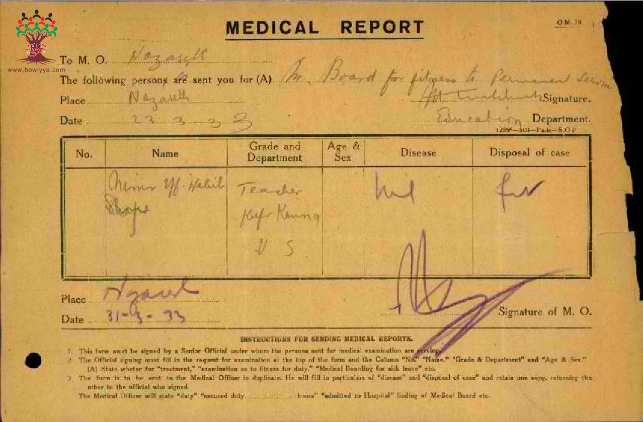 تقرير طبي بأن المعلم نمر حبيب العليمي مناسب للخدمة