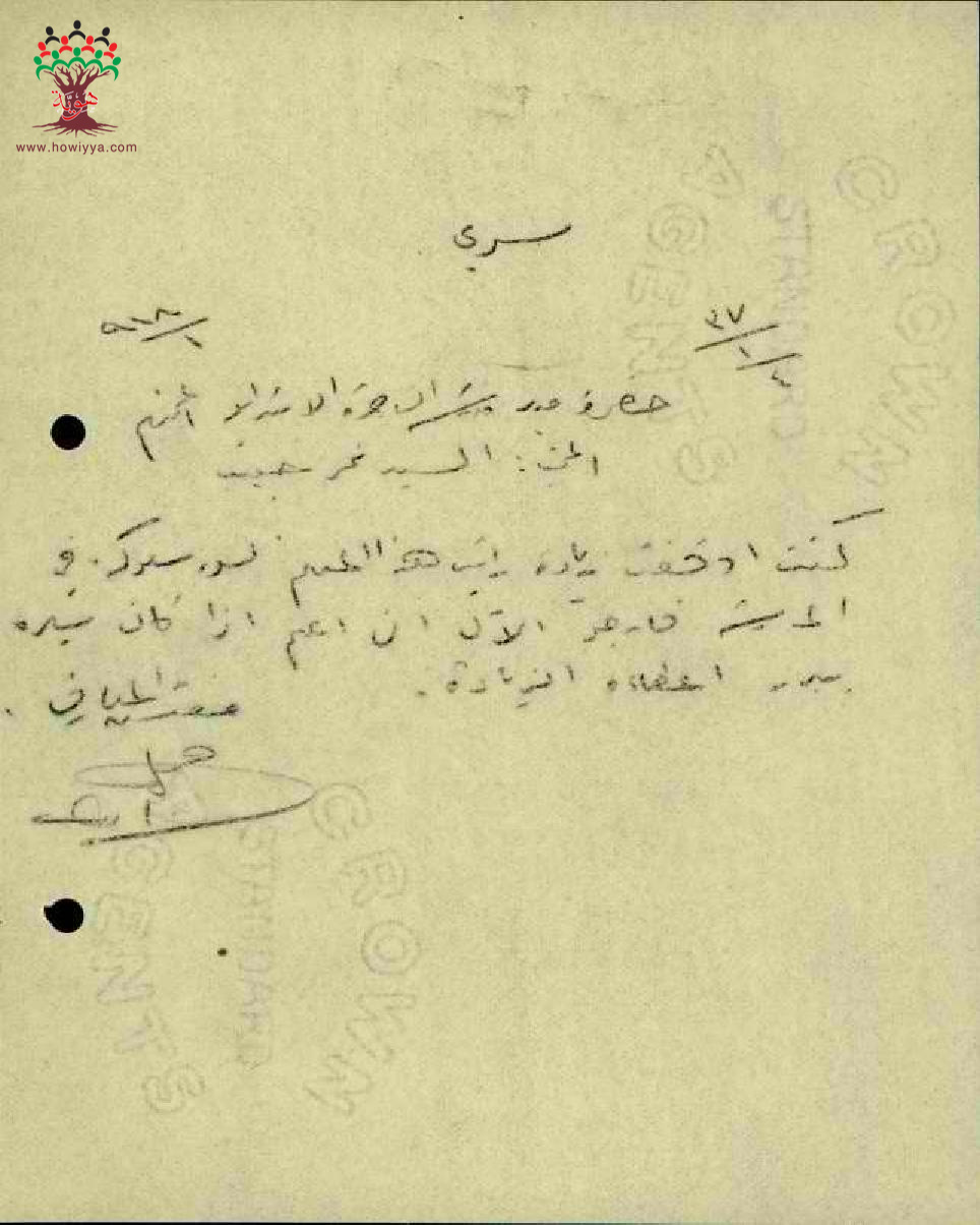 رسالة من مفتش المعارف الى مدير مدرسة الناصرة بخصوص اعادة زيادة راتب المعلم نمر العليمي