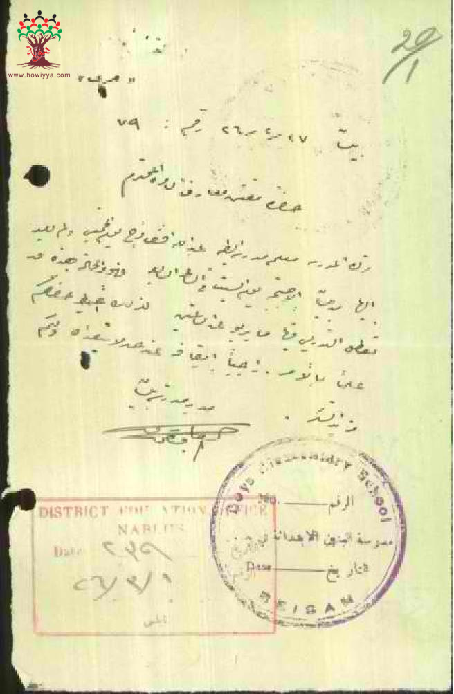 رسالة من مدير مدرسة الطيبة الى مفتش المعارف بخصوص تغيب المعلم عبد الله فرج عن العمل