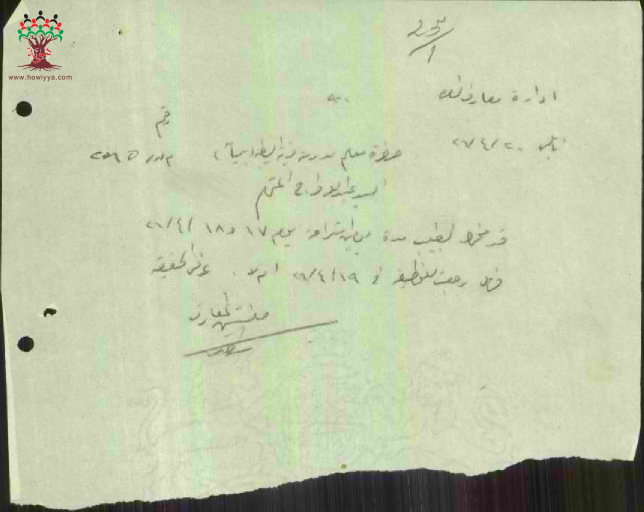 رسالة من مفتش المعارف الى المعلم عبد الله فرج يسأله عن عودته الى العمل