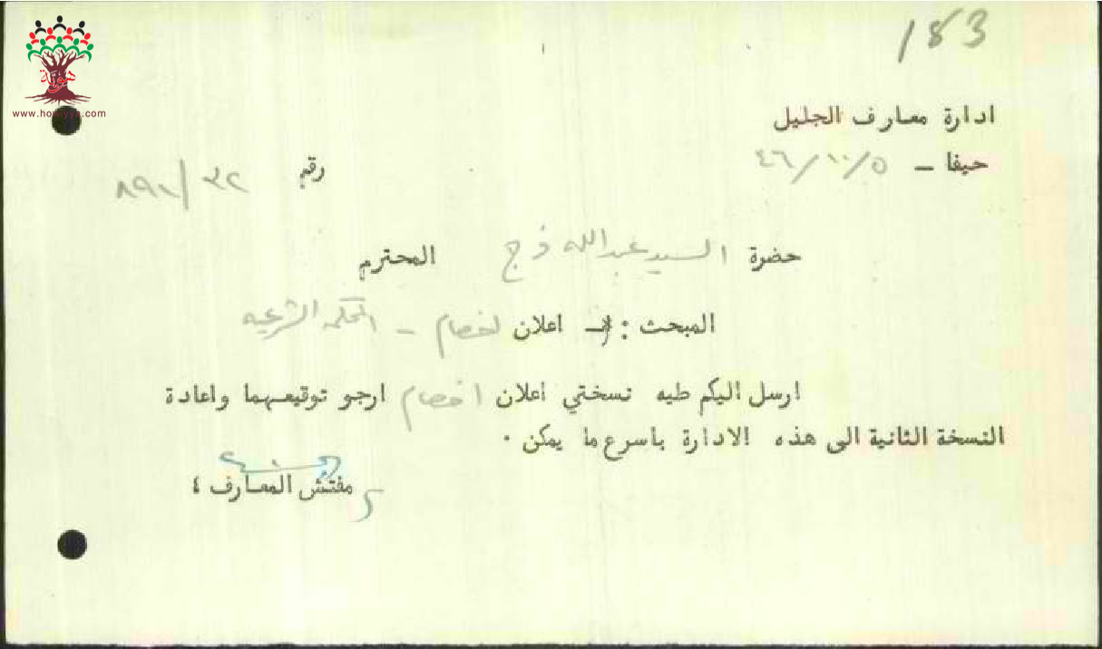 رسائل بخصوص اعلان اخصام في المحكمة الشرعية للمعلم عبد الله فرج