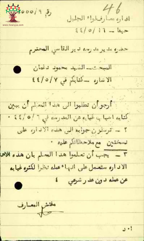 مجموعة رسائل بخصوص أسباب تغيب المعلم محمود دغمان