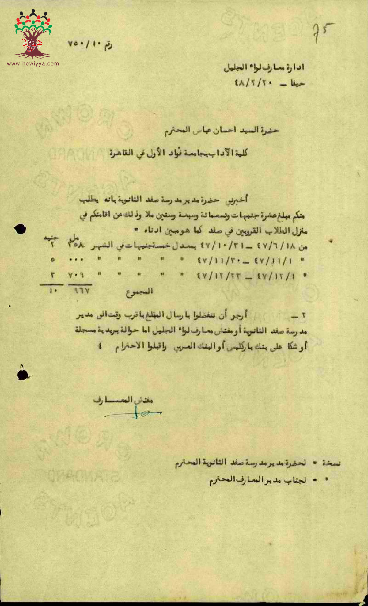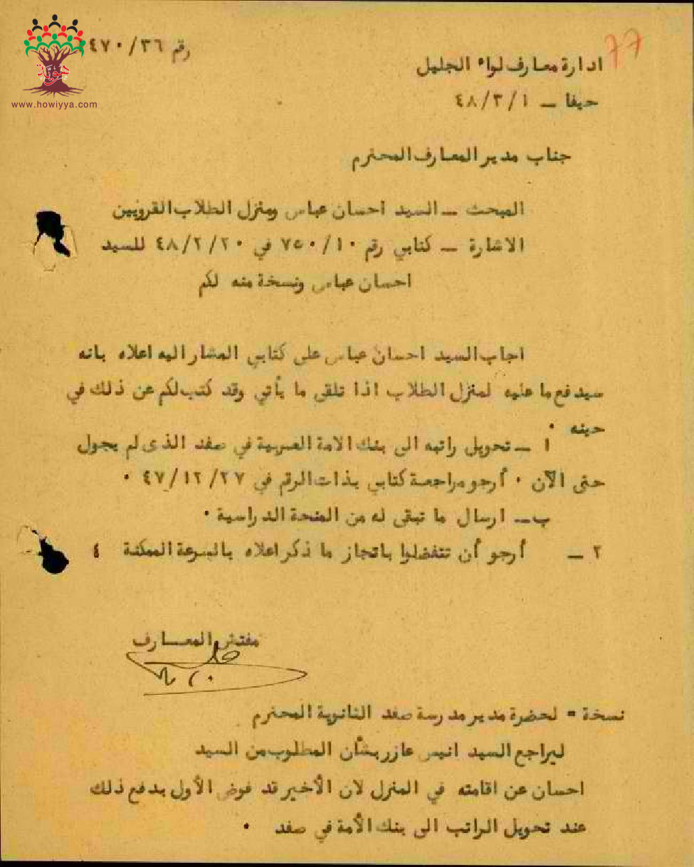 مجموعة رسائل بخصوص دفع المعلم إحسان عباس ما عليه للسكن في منزل الطلاب