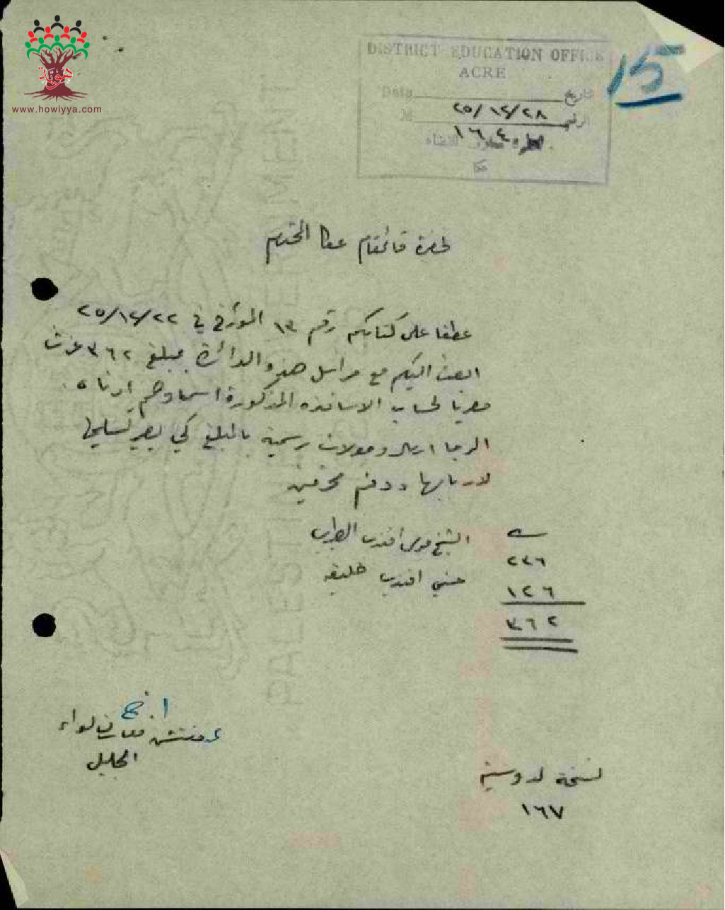 مجموعة رسائل بخصوص الخصم وحجز ربع راتب المعلم حسني خليفة لمصلحة الضرائب