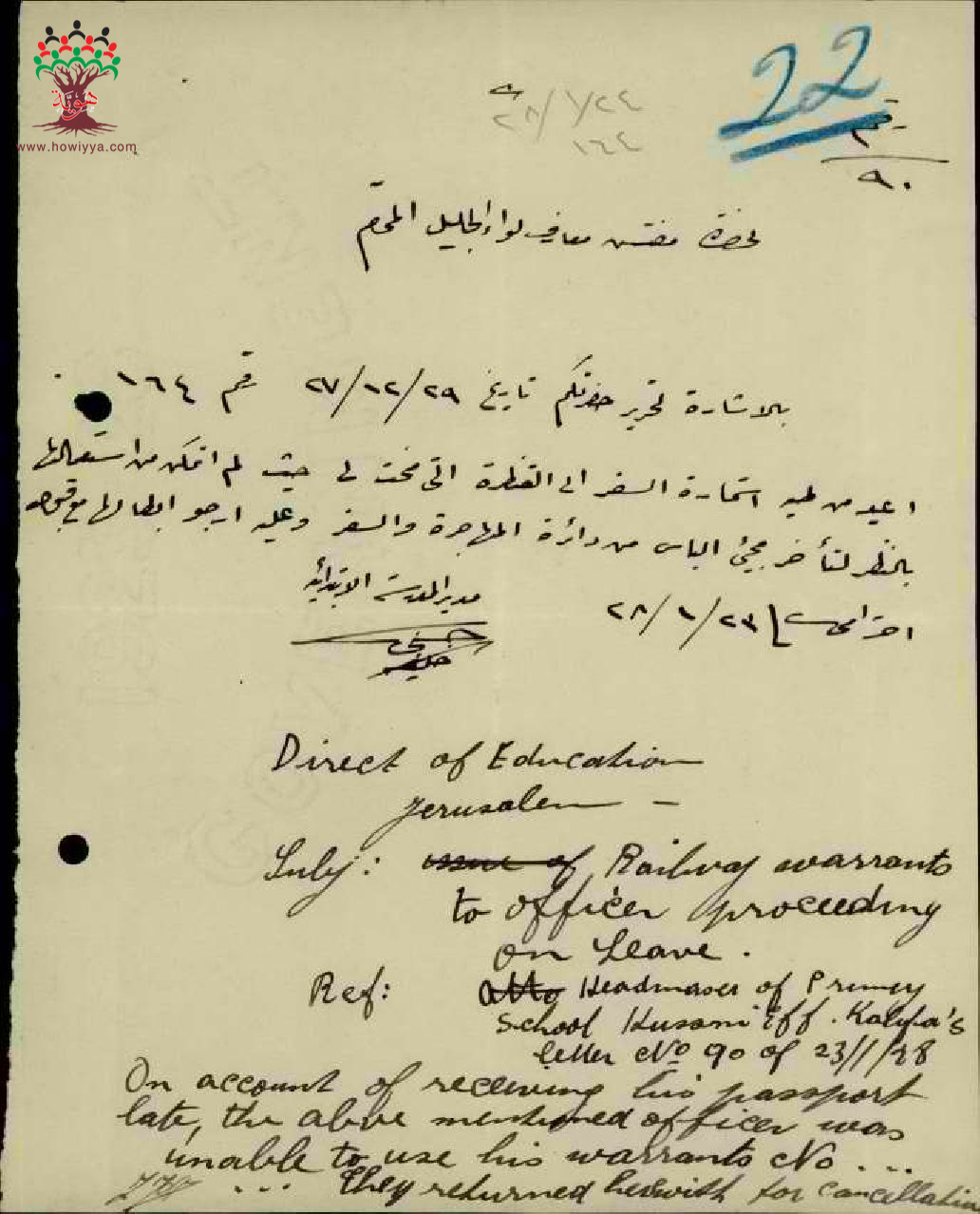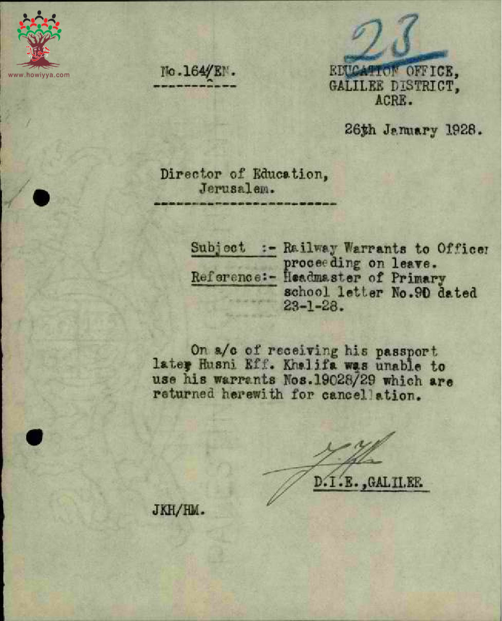 رسائل بخصوص اعادة استمارة سفر المعلم حسني خليفة