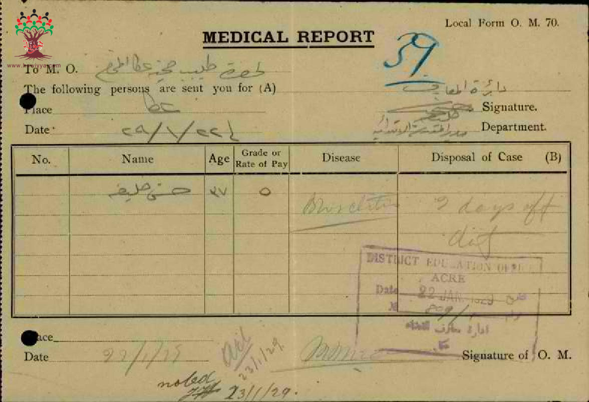 تقرير طبي عن غياب المعلم حسني خليفة-مدرسة عكا