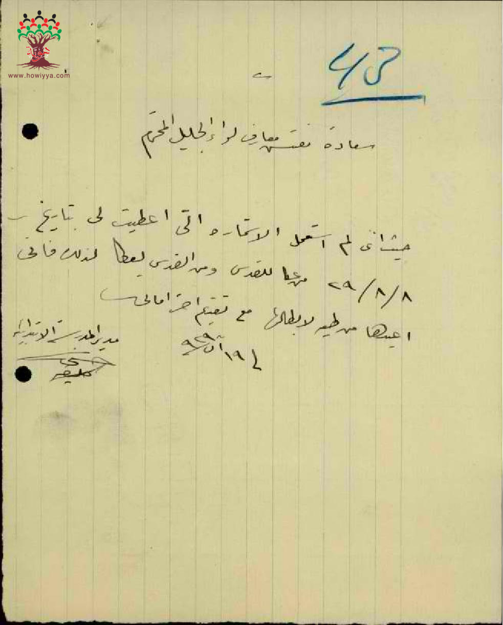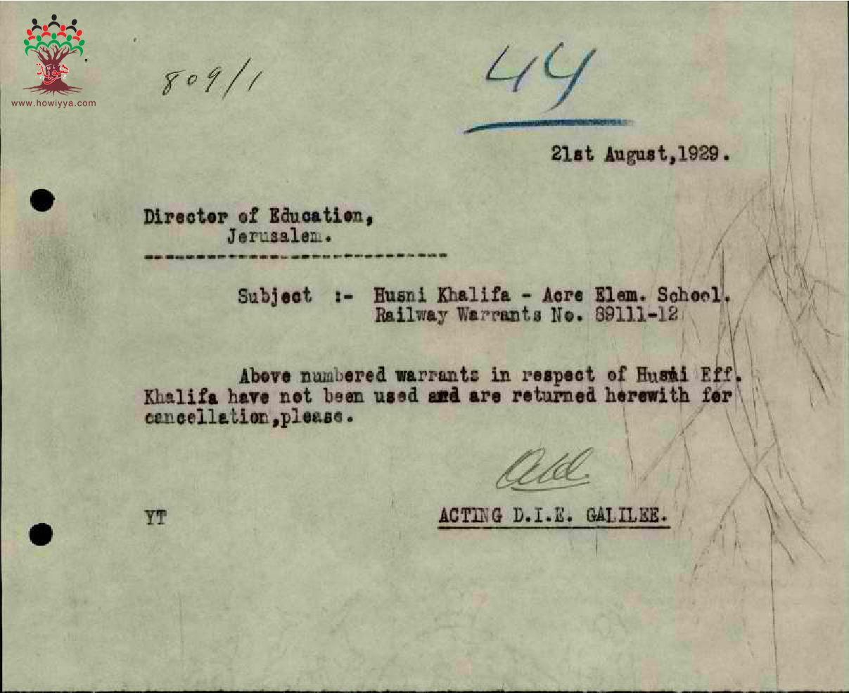 رسائل بخصوص اعادة استمارة سفر المعلم حسني خليفة