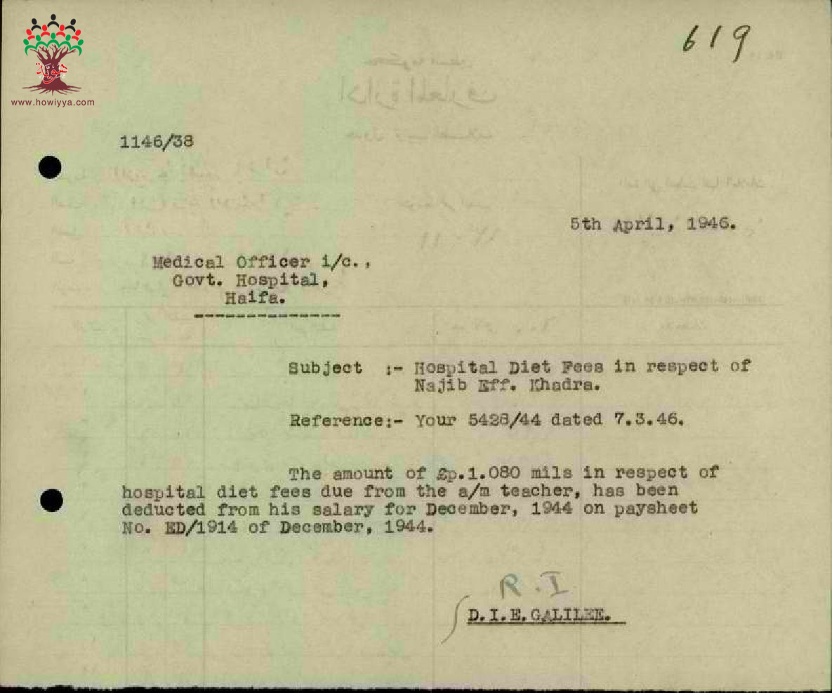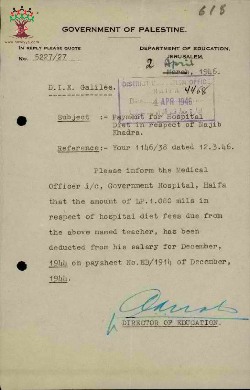 رسائل بخصوص خصم فاتورة المستشفى من راتب المعلم نجيب الخضرا