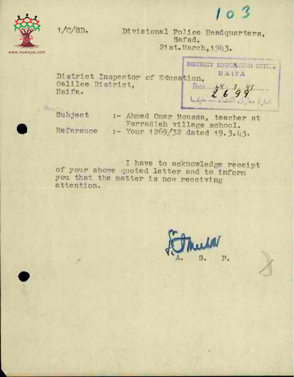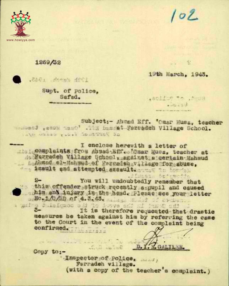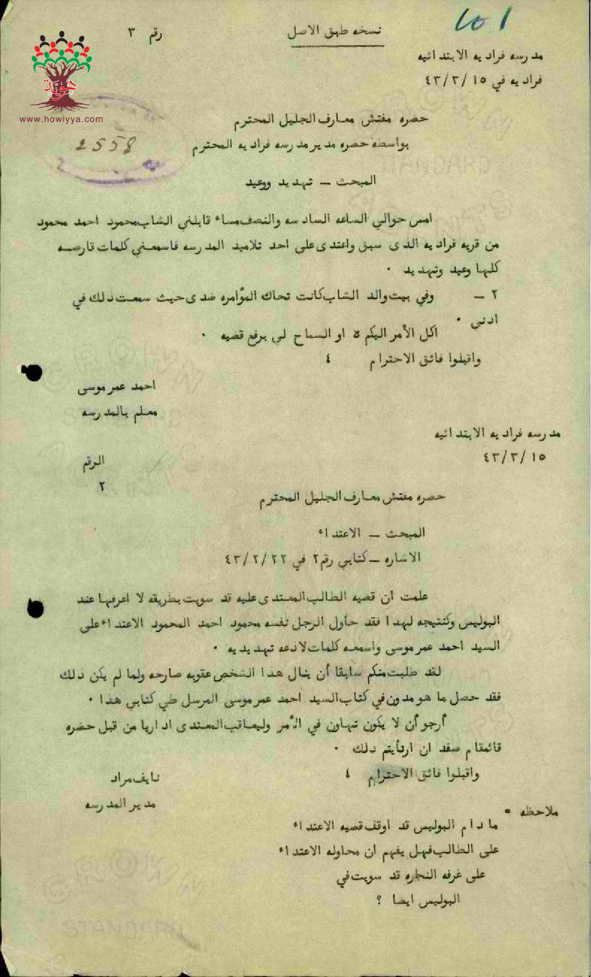 تهديد ووعيد للمعلم احمد عمر موسى - صفد - مدرسة فراضية